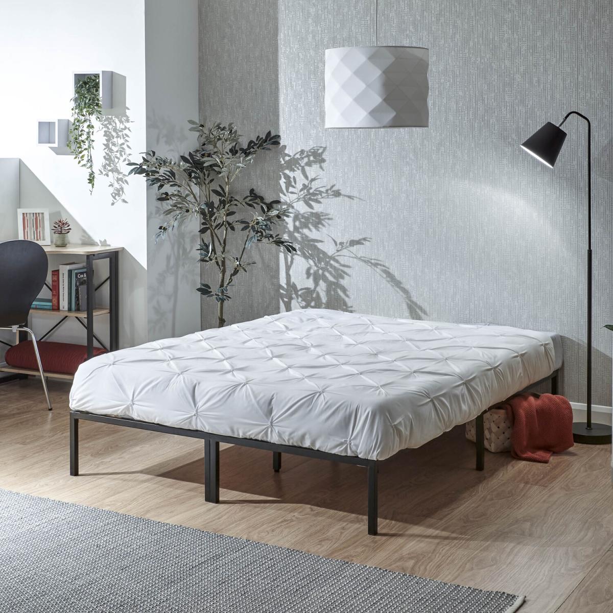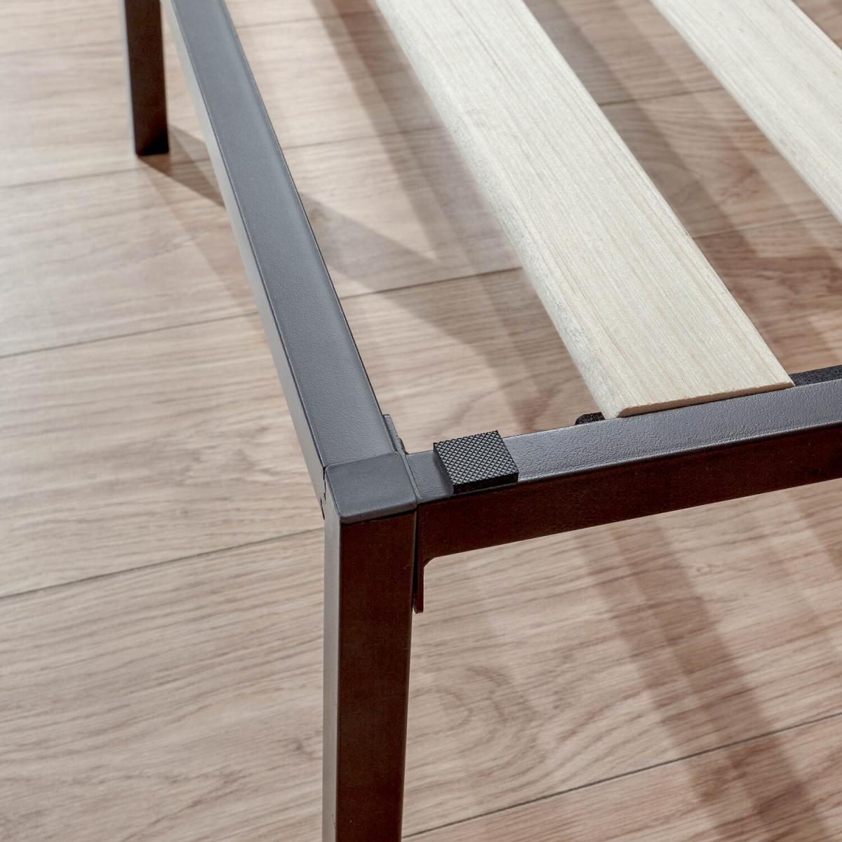 Turn your bedroom into the epitome of loft living with our modernist Kore platform bed. Assembled in minutes, the black powder-coated steel frame and heavy-duty laminate slat system makes a sturdy base for a double mattress, with grip pads to provide extra security. The bed's industrial-minimalist design is a smart addition to an uncluttered, contemporary interior and is a savvy choice where space is at a premium. The open framework enables an easy cleaning regime and offers space for extra storage, should it be required. A high-quality furnishing piece that combines style and practicality in a simple, durable design that won't date.
