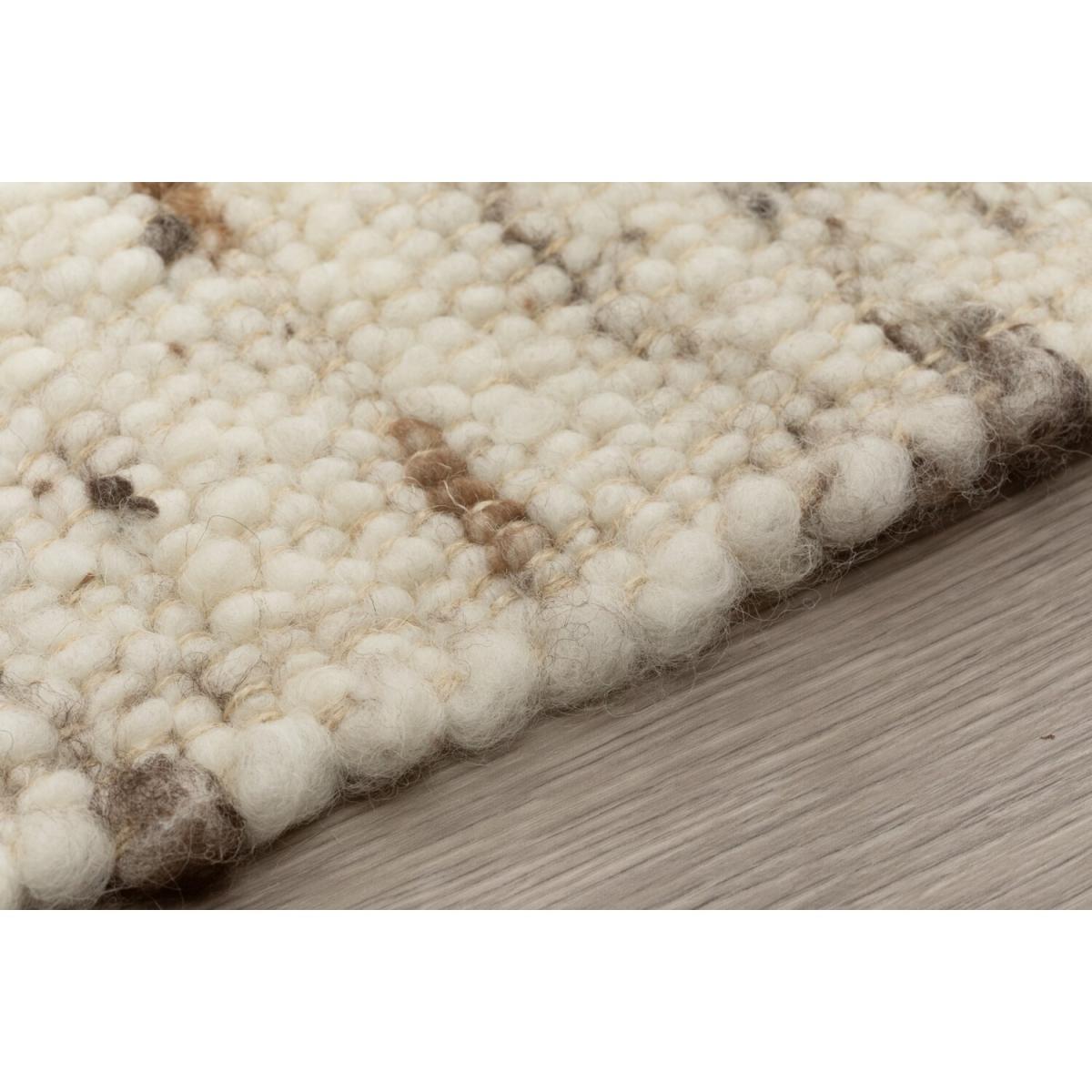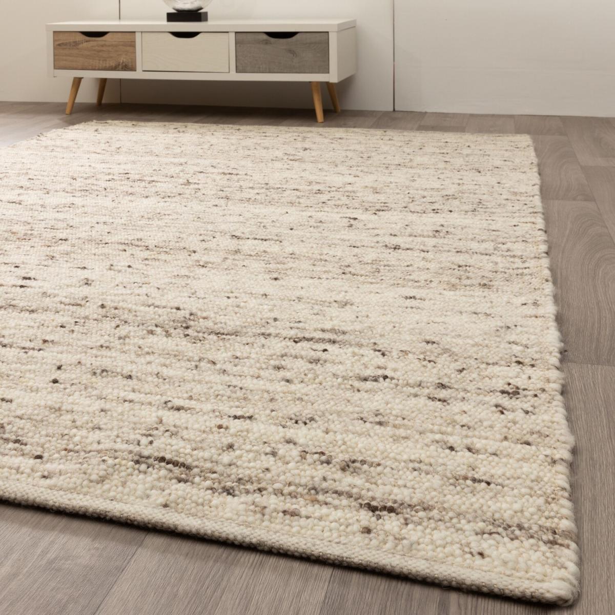 Steffensmeier Handwoven wool rug Korinth. A completely Natural rug made of the best new wool. With the Korinth German rug specialist Steffensmeier offers you a highly natural and sustainable wool rug. The production stays free of insecticides dyes and plastic what makes the rug a pleasant addition to living rooms sleeping rooms as well as children s rooms. On top of all those benefits the area rug comes at a very affordable price. For the Korinth we rely on high quality virgin wool from New Zealand and Europe only. The New Zealand wool provides for the light basic shade. The melanges in gray beige or brown are created by adding darker European wool. The thread core and the chain are made of jute. In order not to produce unnecessary plastic waste the rugs are sent in robust cardboard boxes. By shipping this way we can drastically reduce the use of environmentally harmful plastic films to our Planet. The Korinth rug can be used on both sides and should be turned and rotated regularly so it will run evenly and keep its beautiful look for a long time. Please only vacuum the rug with a flat nozzle and not with a rotating brush.