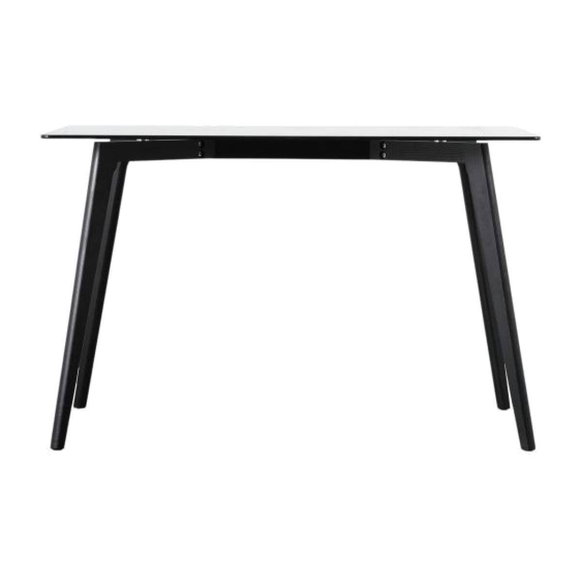 This lovely coffee table features a beautifully designed solid oak base with a black finish combined with a smoked tempered glass top to give a stunning contemporary look. It is part of a collection offering a range of tables, in the black oak and smoked glass, and also with natural oak bases paired with clear glass. The tables are part of our Packed-Flat Design Project, offering easy delivery to any room in any property, whilst reducing the packaging needed. Assembly is required, but all the tools needed are supplied. Material: Tempered Glass. Colour/Finish: Black. Table Shape: Rectangle.