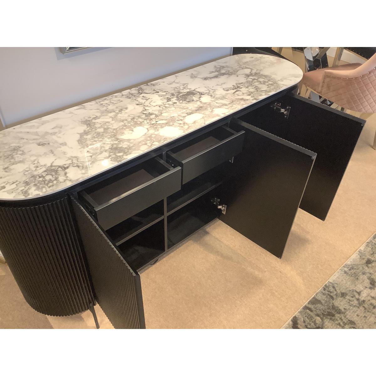 I really like the Kos 3 door sideboard for its sleek, modern look and versatile design. Its rounded edges and minimalist profile make it a great piece for contemporary interiors, but it can also work well in eclectic or Scandinavian styles due to its clean lines. The marble top adds a touch of luxury and durability, perfect for displaying decorative items or everyday essentials. Practical styling tips include layering with textured ceramics or greenery on top, and arranging beautiful but functional items like trays or bowls inside its compartments. It’s an ideal choice for living rooms, dining areas, or even a hallway where stylish storage is as important as the visual appeal.