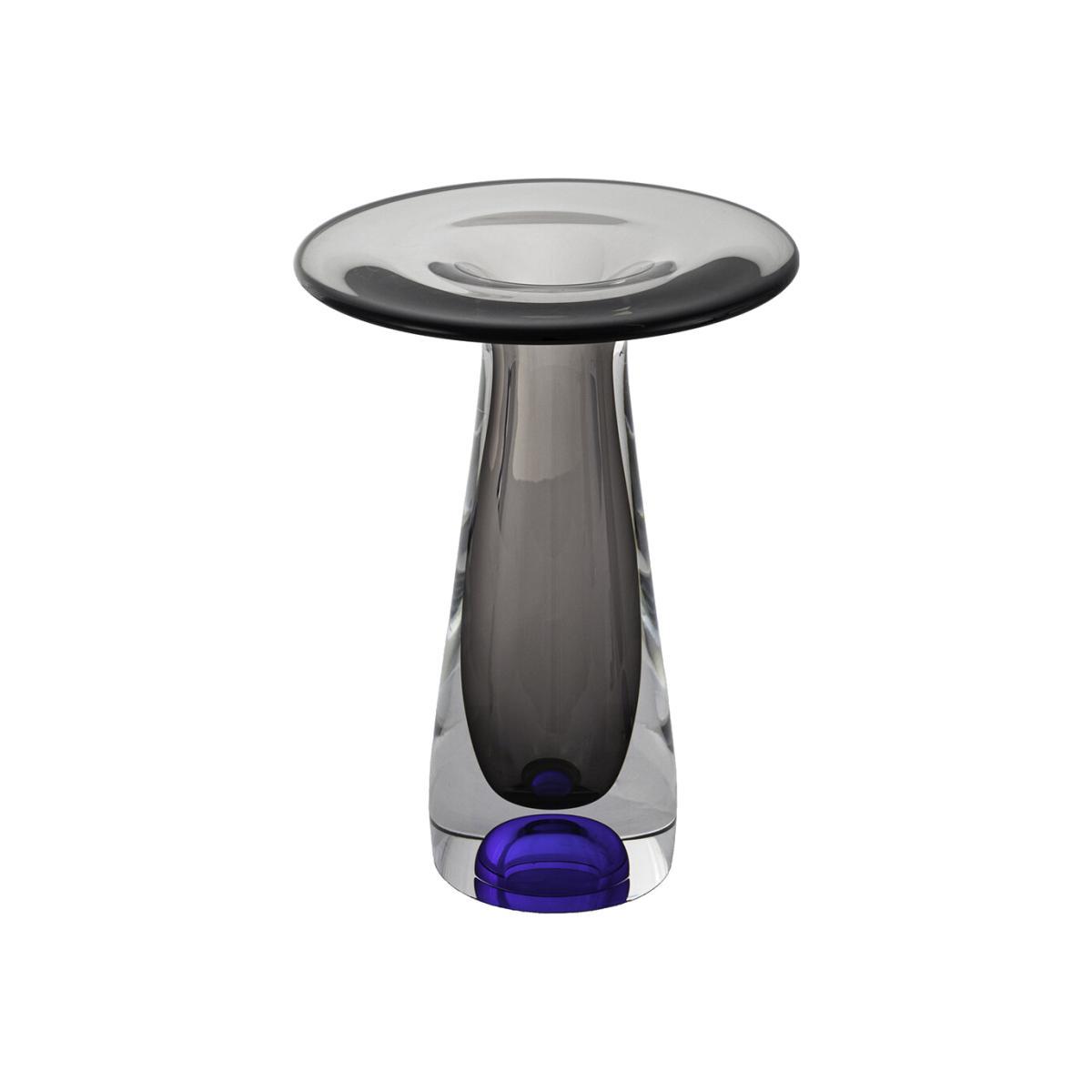 Make a statement with this Fado vase from Kosta Boda. Inspired by Portuguese music, this mouth-blown vase features a blue ball surrounded by grey glass. Pair with more accessories from Kosta Boda to complete the look. Key features: * Material: mouth-blown glass * Dimensions: Ø20xH25cm * Small blue ball surrounded by grey glass * Handmade in Sweden * Designed by Göran Wärff * Each piece is unique