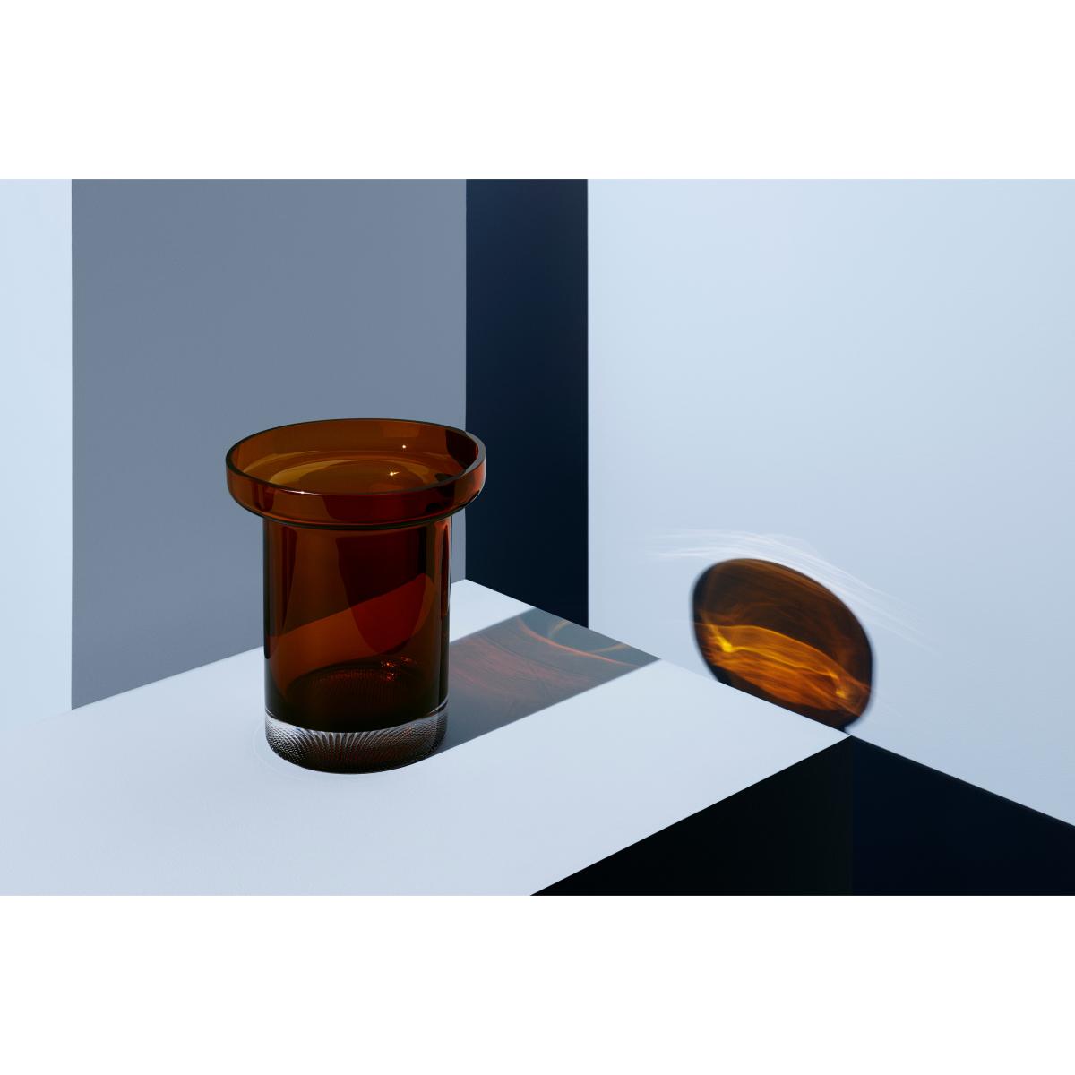 I love this piece for its bold colour and clean, modern silhouette. The amber hue adds warmth to a variety of interiors, from contemporary to more eclectic spaces. It's versatile enough to be a stand-alone decorative element or to showcase a simple bouquet of blooms, which can really highlight the colour contrast. For styling, I recommend pairing it with neutral or earthy tones to let the amber pop, or grouping it with other glass pieces in complementary shades for a curated look. It's particularly effective on minimalist sideboards, coffee tables, or window sills, where its striking colour can be appreciated in natural light. A practical tip is to use it with seasonal flowers-think warm-toned blooms in autumn or simple greenery in spring-to enhance its visual impact.