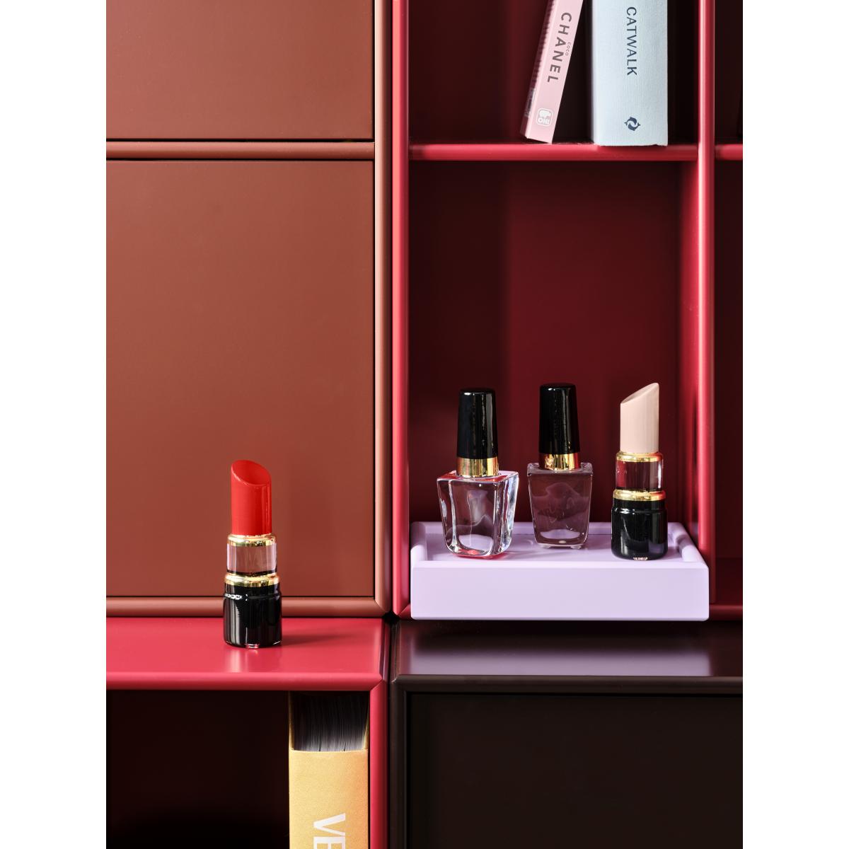 I really like this little Kosta Boda Make Up nail varnish as a decorative object; its sleek, minimalist shape and vibrant poppy red colour make it a bold statement piece. It works particularly well in modern or eclectic interiors where a splash of colour or a touch of whimsy can lift the overall aesthetic. To style it effectively, group it with other coloured or clear glass vases or alongside accessories that share its bold hue. It’s also perfect for a shelf or side table where it can double as a playful conversation starter. Keep in mind that its length and clean lines lend themselves to more streamlined, contemporary spaces rather than ornate or traditional settings.