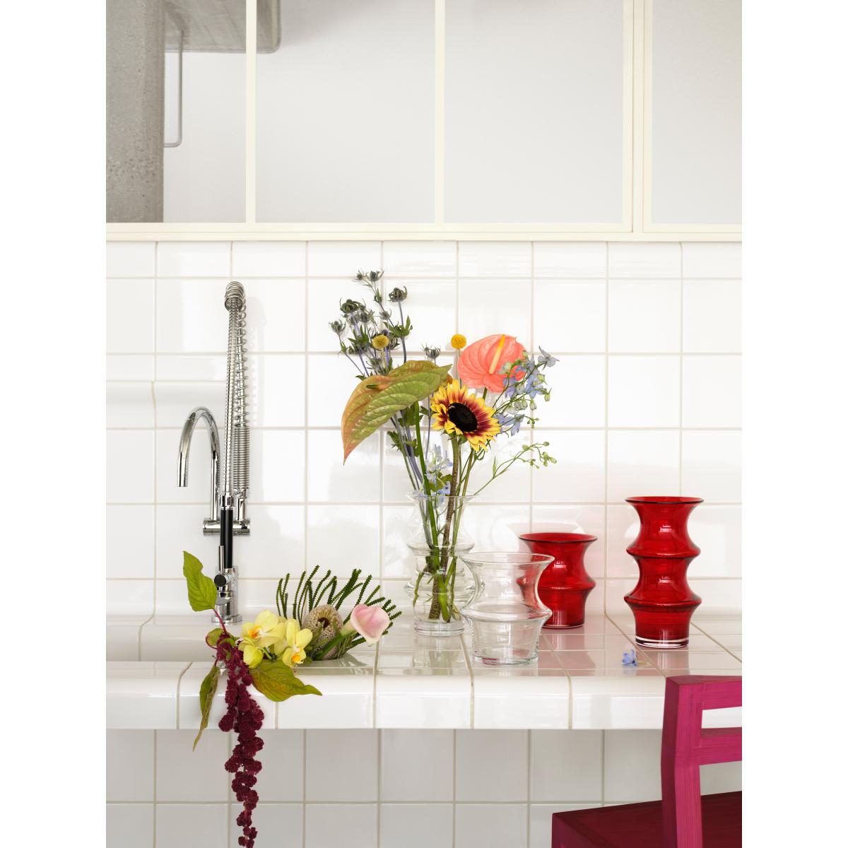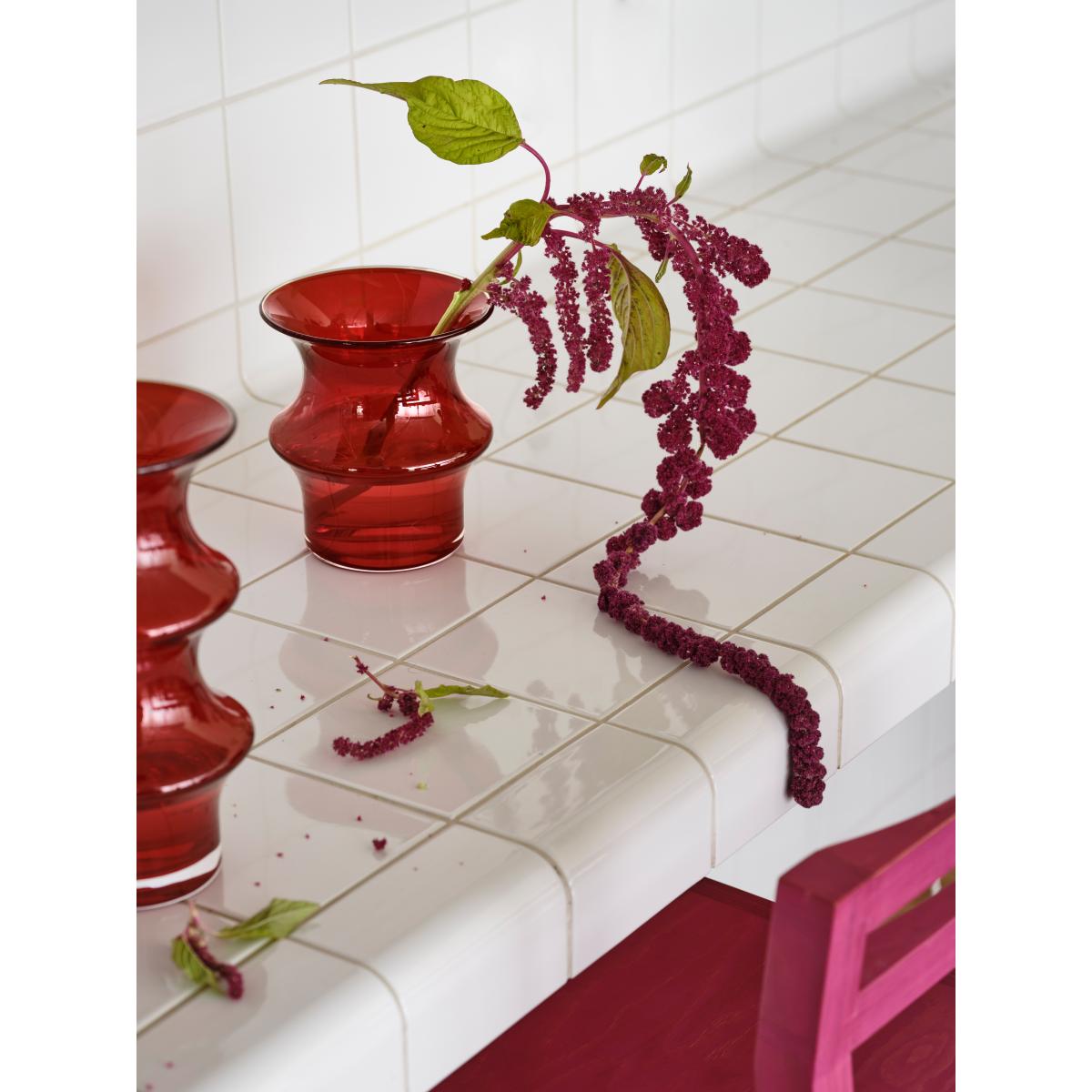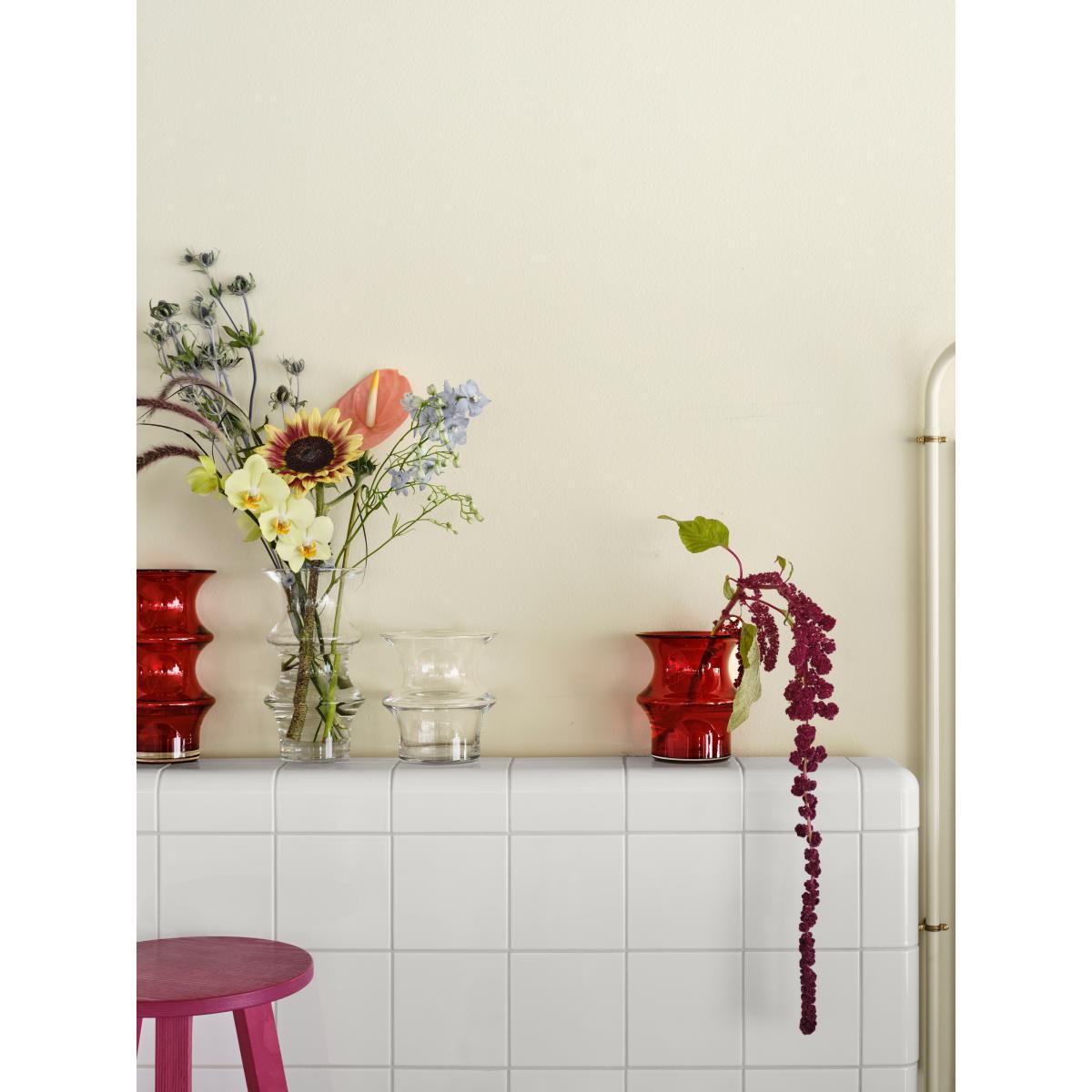 I love this piece for its bold colour and sculptural quality; it’s a striking addition that can stand alone or complement a minimalist or modern interior. The Kosta Boda Pagod vase works well in spaces that benefit from a pop of colour-think neutral living rooms or bedrooms-where it can act as a statement piece on a sideboard or mantel. For styling tips, try pairing it with a simple bouquet of white or deep green foliage to highlight its vivid red hue, or leave it empty to showcase its shape and craftsmanship. Its sizeable height also makes it ideal for adding height and visual interest to a corner or a console table, especially in longer, more open spaces.