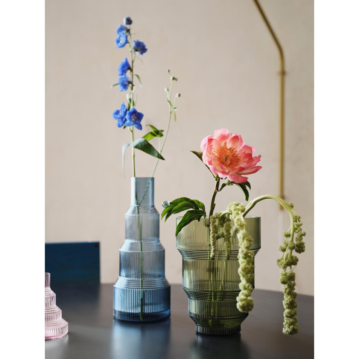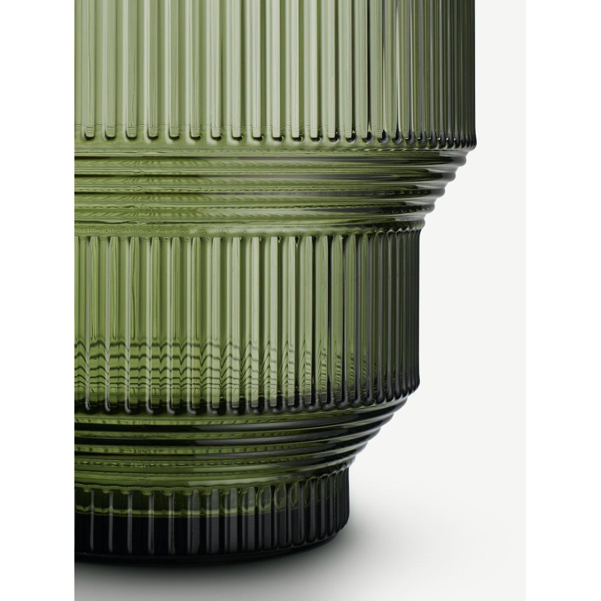 The Kosta Boda Pavilion vase in green is a versatile piece that works well in both modern and eclectic interiors. I love its bold ribbed texture and rich colour, which add visual interest without overwhelming a space. It’s perfect for showcasing single statement stems or a small bouquet of seasonal flowers, enhancing rather than competing with natural elements. For styling tips, consider placing it on a side table or mantle with minimal surroundings to let its shape and colour stand out, or group with other textured ceramics for a curated look. Its generous size also makes it suitable as a standalone sculptural piece when empty, adding a pop of colour to neutral settings.