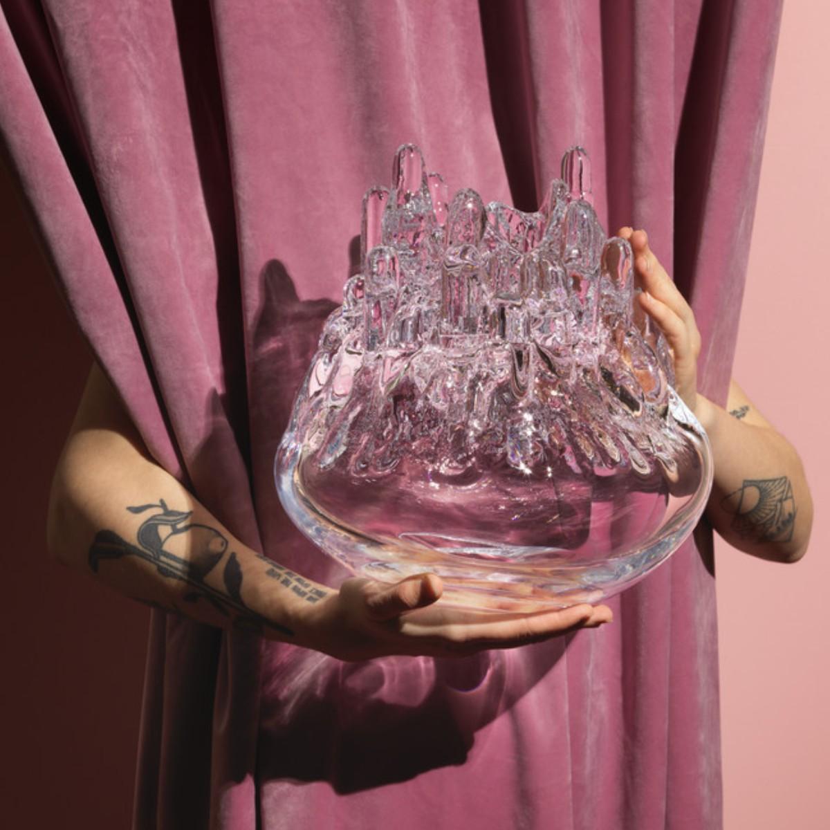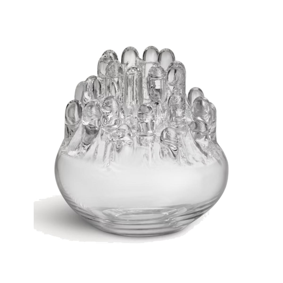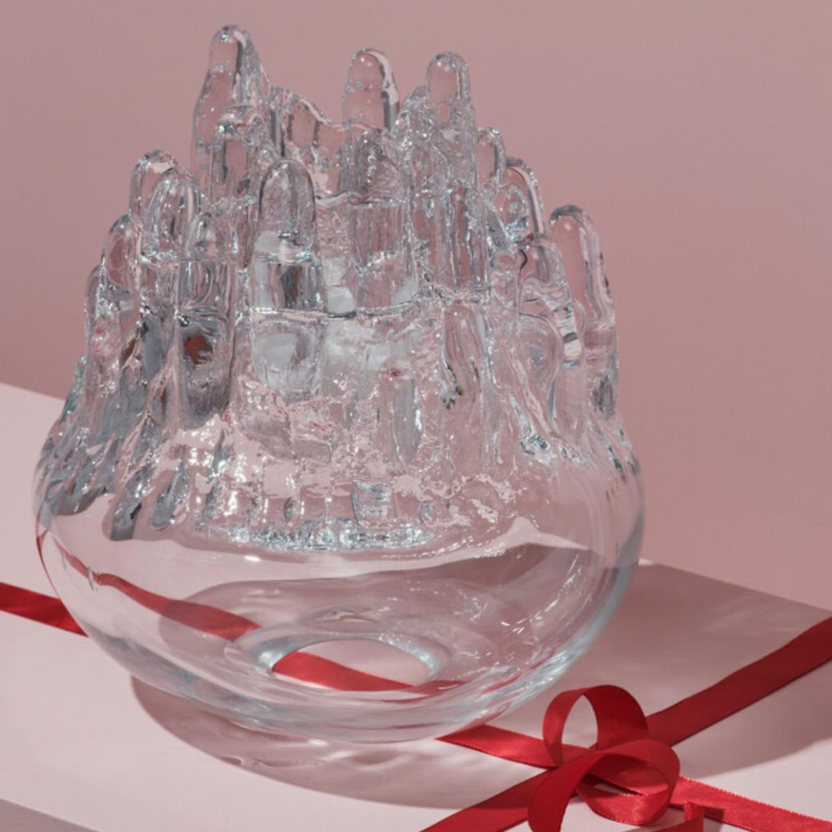 Polar from Kosta Boda, originally launched in 1974, is a series of glass sculptures in different colours and sizes reminiscent of rippling water frozen in time. Polar is a votive candle holder, but it is also a sculpture and a beautiful design object. The clear-glass votive lights up the room, whether grouped or used on its own. Design by Göran Wärff.