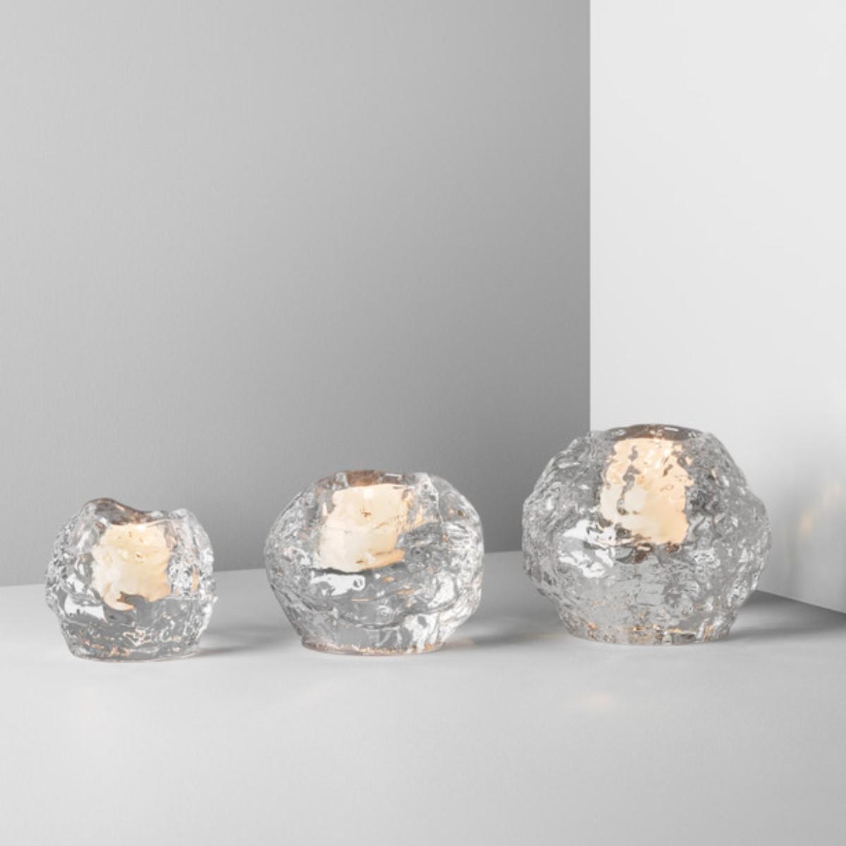 Snowball is a reliable design object to brighten up the winter darkness. This 3-pack includes the votive candle holders 60, 70 and 90mm. Snowball from Kosta Boda is not just any candle holder. The iconic votive has illuminated its surroundings since 1973, when it was created through an experiment where glass was blown directly into a snowdrift. It has since sold over 15 million worldwide. With a shape and surface as if it were actually made of snow, Snowball evokes the snow lanterns of childhood.