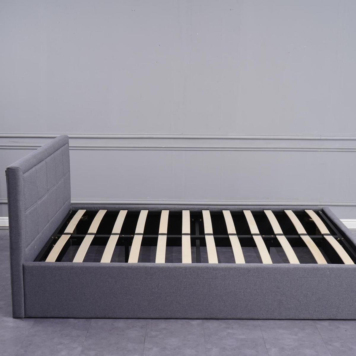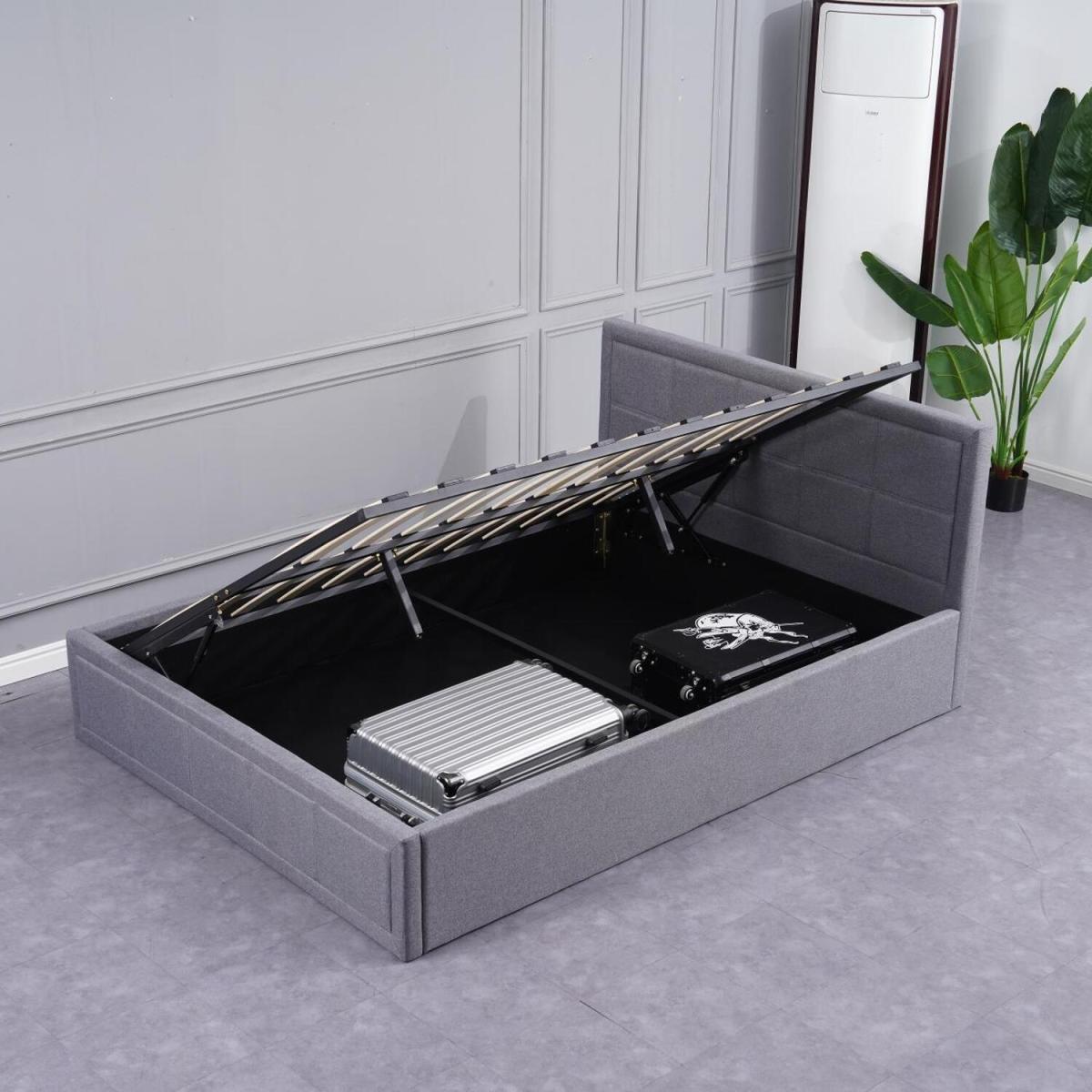 Grey Single 3Ft Upholstered linen Ottoman Side Lift Bed Frame is a high-quality ottoman storage bed. It can be opened from either the left or right side ensuring it will function perfectly for you. Just mount the gas lift mechanism on the side which suits you. The bed features hydraulic gas lift arms that raise the mattress base revealing huge amounts of storage space. The frame will remain upright once lifted to give you both hands-free to remove or store items underneath. The inside Storage Height is 25cm on all sides, allowing the metal mattress frame to sit slightly below the level of the footboard and side rails.