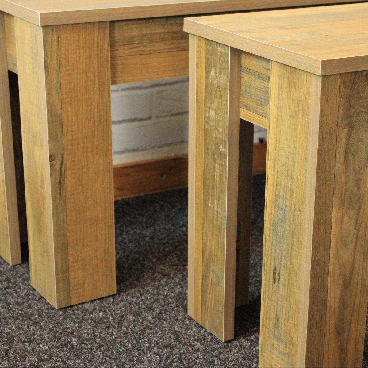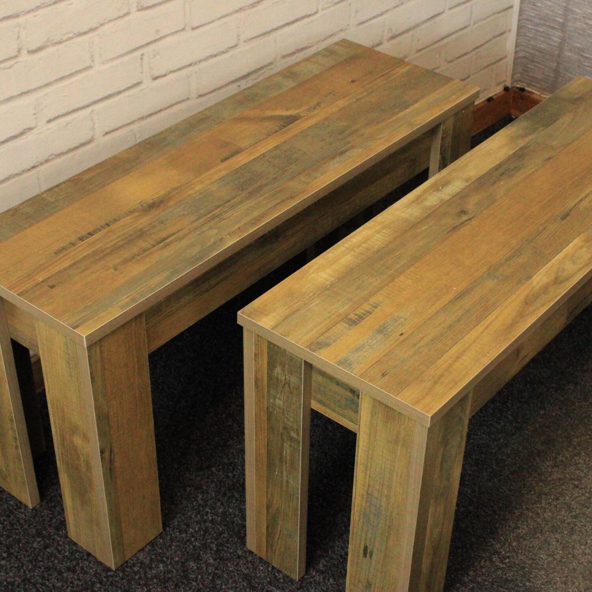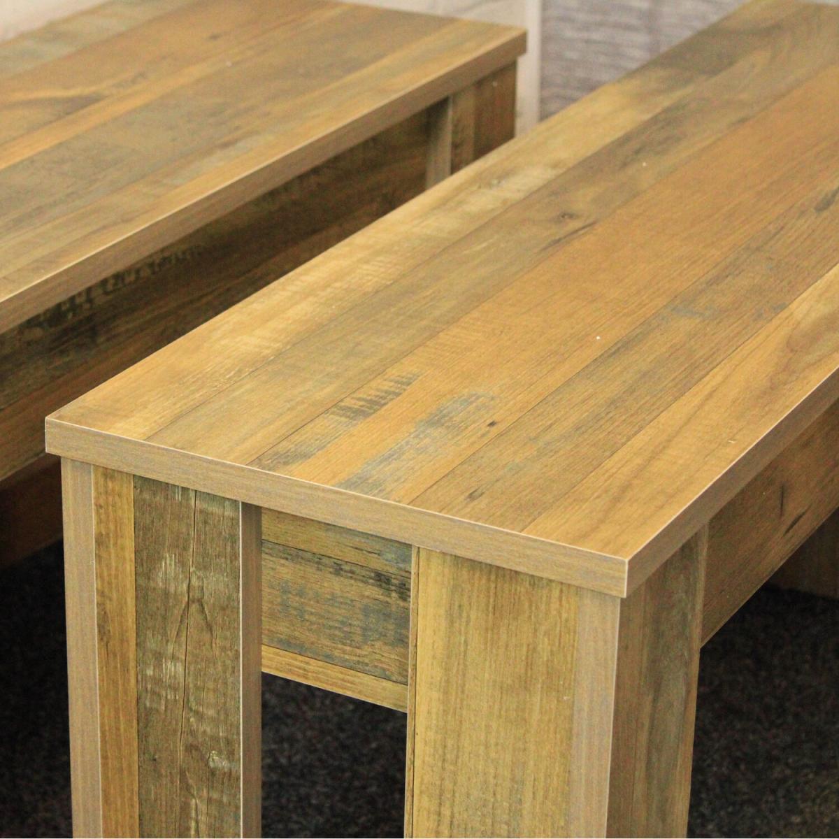 A Stunning Wooden Rustic Effect 2 Benches. The Benches is made from wood and has a melamine laminated rustic effect natural wood grain finish which looks great. Easy to wipe clean. Flat packed, some home assembly required.