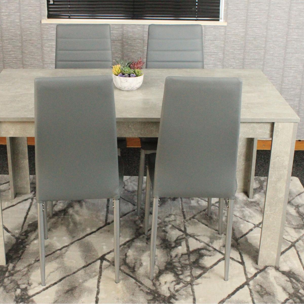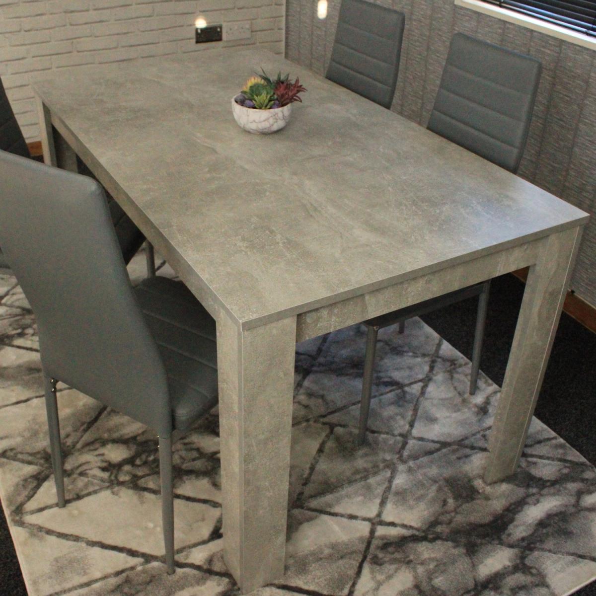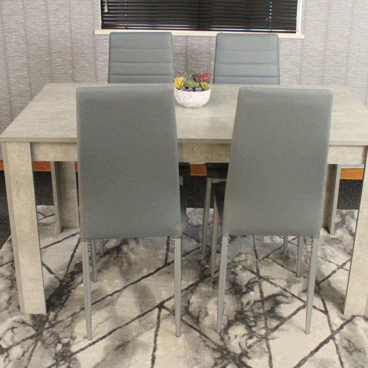 This dining set strikes a great balance between contemporary style and practicality. I love the neutral stone grey tone of the table - it’s versatile enough to slot into both modern and more relaxed interiors, such as minimalist, industrial, or Scandi schemes. The matching grey chairs add cohesion while maintaining a sleek look. For styling, I recommend pairing this set with colourful or textured tableware to create visual interest or keeping it simple with monochrome accessories for a refined feel. It works well in open-plan kitchens, dining rooms, or even as a statement piece in a more eclectic space. To keep it looking its best, consider coasters or placemats to prevent scratches on the stone surface and complement the grey palette with soft textiles like plush throws or cushions around the room for added comfort.