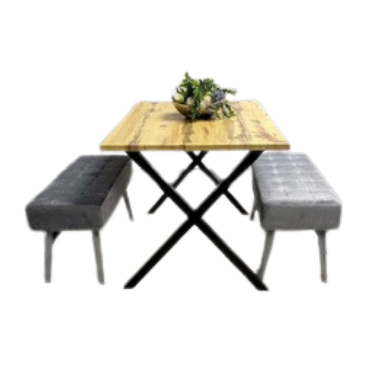 Kosy Koala Wooden Style Dining Table With Grey Velvet Benches - Grey