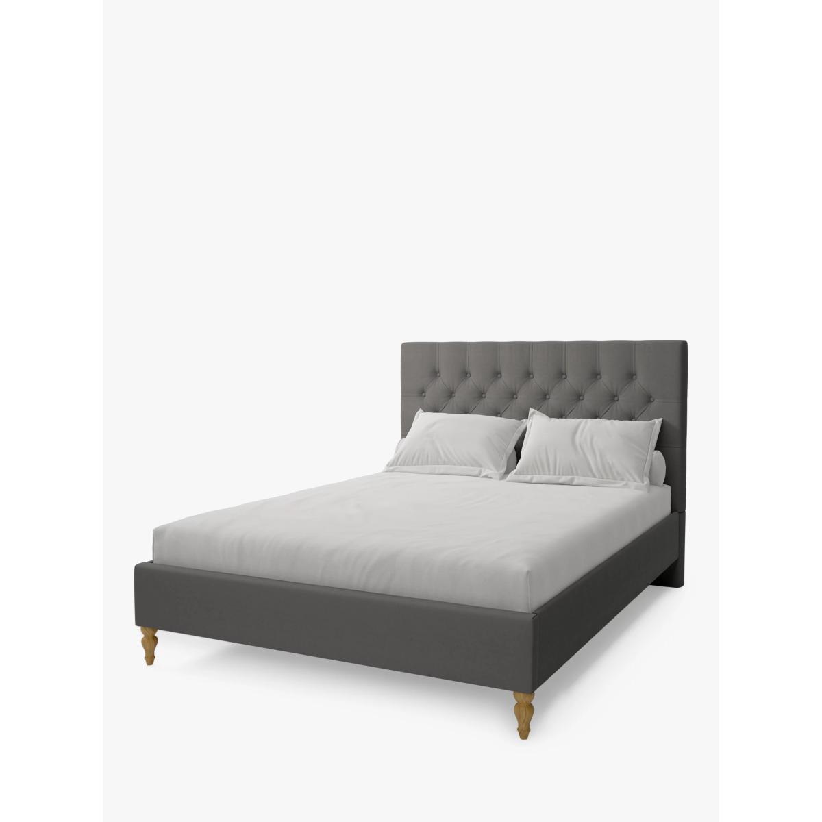 Koti Home's Eden bed frame has a timeless, adaptable design that works well in both modern and more traditional bedrooms. Made from robust chipboard with classic button detailing on the high headboard, it has an elegant profile that calls for crisp white linens and cosy textiles. Solid slats in the base provide a foundation for your mattress. Handcrafted in the UK, each frame is made to order by a team of skilled craftsmen. This bed frame can be upholstered in a fabric of your choice: Luxe Velvet: this is an incredibly soft fabric which has a deep and luxurious pile. Available in a more elevated colour palette for an extra touch of grandeur Vintage Velvet: this short pile fabric is great if you want to create an impact with colour in your bedroom Classic Linen Look: this soft woven fabric looks and feels like linen and its subtle tones are ideal for creating a sense of calm in your space Heritage Soft: this super-soft fabric is inspired by the warmth and cosiness of woolen fabrics, but made from 100% polyester, it's much more durable Want to see it first? You may want to see and get a feel for the furniture before ordering. Pop into one of our shops to see the full range of colours and fabrics on offer. We'll be able to tell you where the range you'd like to view is on display.