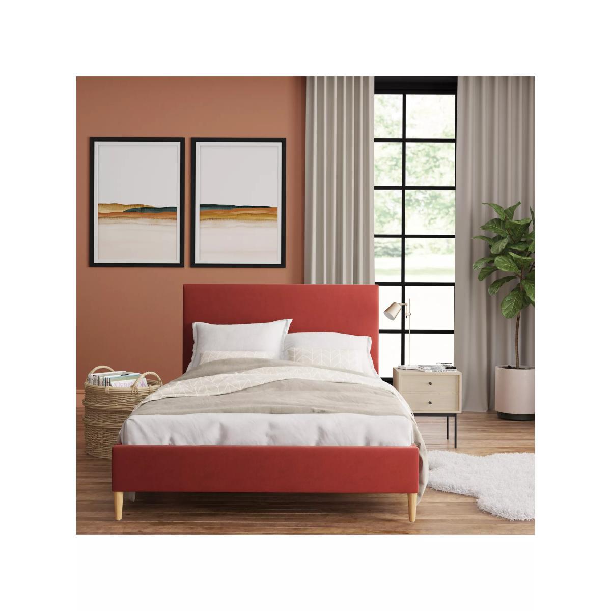Keep things simple with Koti Home's Plain bed frame. It's designed with a high headboard that will really showcase your choice of fabric. Plus, solid slats in the base provide a firmer level of support for your mattress. This bed frame can be upholstered in a fabric of your choice: Luxe Velvet: this is an incredibly soft fabric which has a deep and luxurious pile. Available in a more elevated colour palette for an extra touch of grandeur Vintage Velvet: this short pile fabric is great if you want to create an impact with colour in your bedroom Classic Linen Look: this soft woven fabric looks and feels like linen and its subtle tones are ideal for creating a sense of calm in your space Heritage Soft: this super-soft fabric is inspired by the warmth and cosiness of woolen fabrics, but made from 100% polyester, it's much more durable Want to see it first? You may want to see and get a feel for the furniture before ordering. Pop into one of our shops to see the full range of colours and fabrics on offer. We'll be able to tell you where the range you'd like to view is on display.