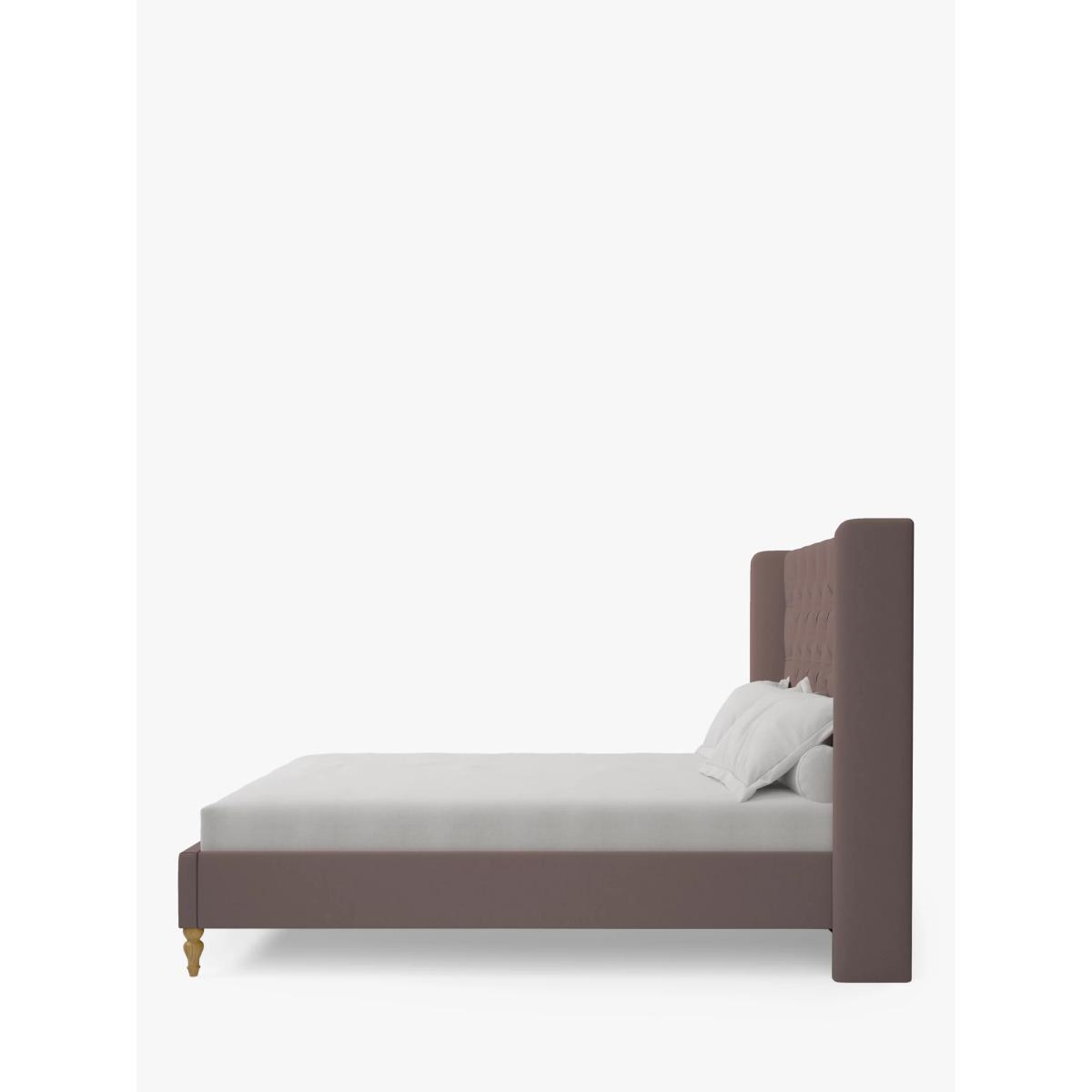 Made in the UK The Winged Button bed frame from Koti Home will transform your bedroom into a chic, hotel-style space. The headboard has a curved, winged design and it's decorated with classic button detailing. Plus, there are solid slats in the base which provide a firmer level of support for your mattress. This bed frame calls for dark, luxurious fabrics to create a dramatic look, or choose soft, muted tones to create a more serene environment. This bed frame can be upholstered in a fabric of your choice: Luxe Velvet : this is an incredibly soft fabric which has a deep and luxurious pile. Available in a more elevated colour palette for an extra touch of grandeur Vintage Velvet : this short pile fabric is great if you want to create an impact with colour in your bedroom Classic Linen Look : this soft woven fabric looks and feels like linen and its subtle tones are ideal for creating a sense of calm in your space Heritage Soft : this super-soft fabric is inspired by the warmth and cosiness of woolen fabrics, but made from 100% polyester, it's much more durable Want to see it first? You may want to see and get a feel for the furniture before ordering. Pop into one of our shops to see the full range of colours and fabrics on offer. We'll be able to tell you where the range you'd like to view is on display.