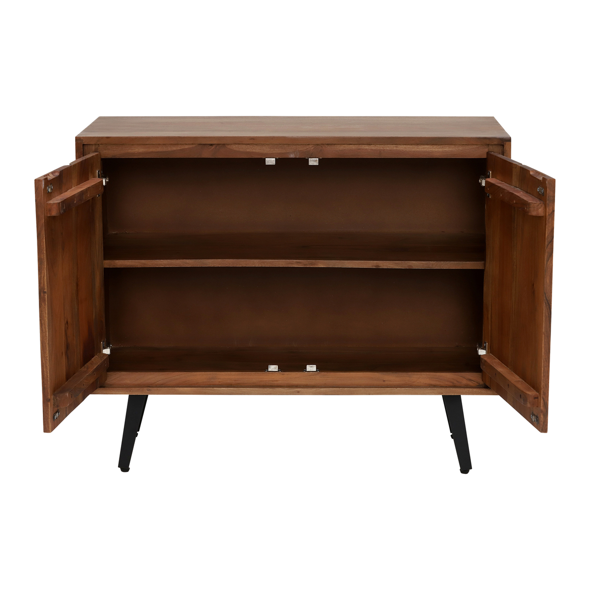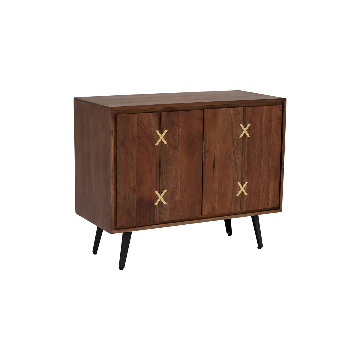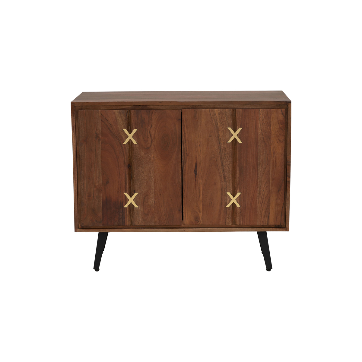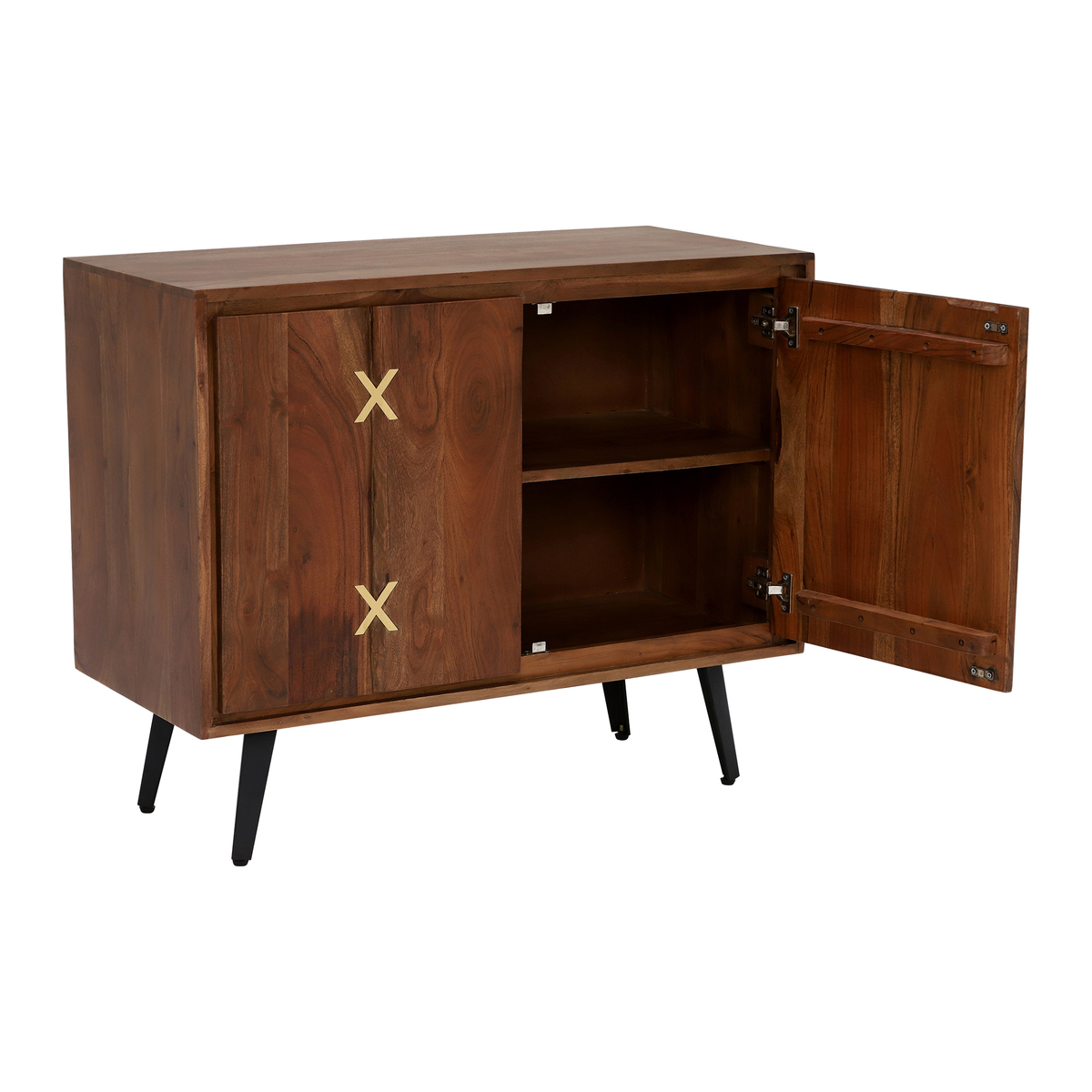 A simple silhouette but oh so stylish, the Kriss 2 Door Sideboard’s compact design offers practical storage that works for a range of spaces. Beautifully crafted from 100% solid acacia wood, the Kriss displays our favourite parts of natural wood - including intricate grains, knots and natural splits that are beautifully complemented by brass cross detail. Housing a handy internal shelf that makes storage of extra plates and tableware easy, the Kriss is an ideal storage solution for the dining room or kitchen.