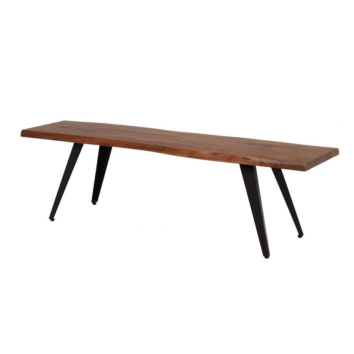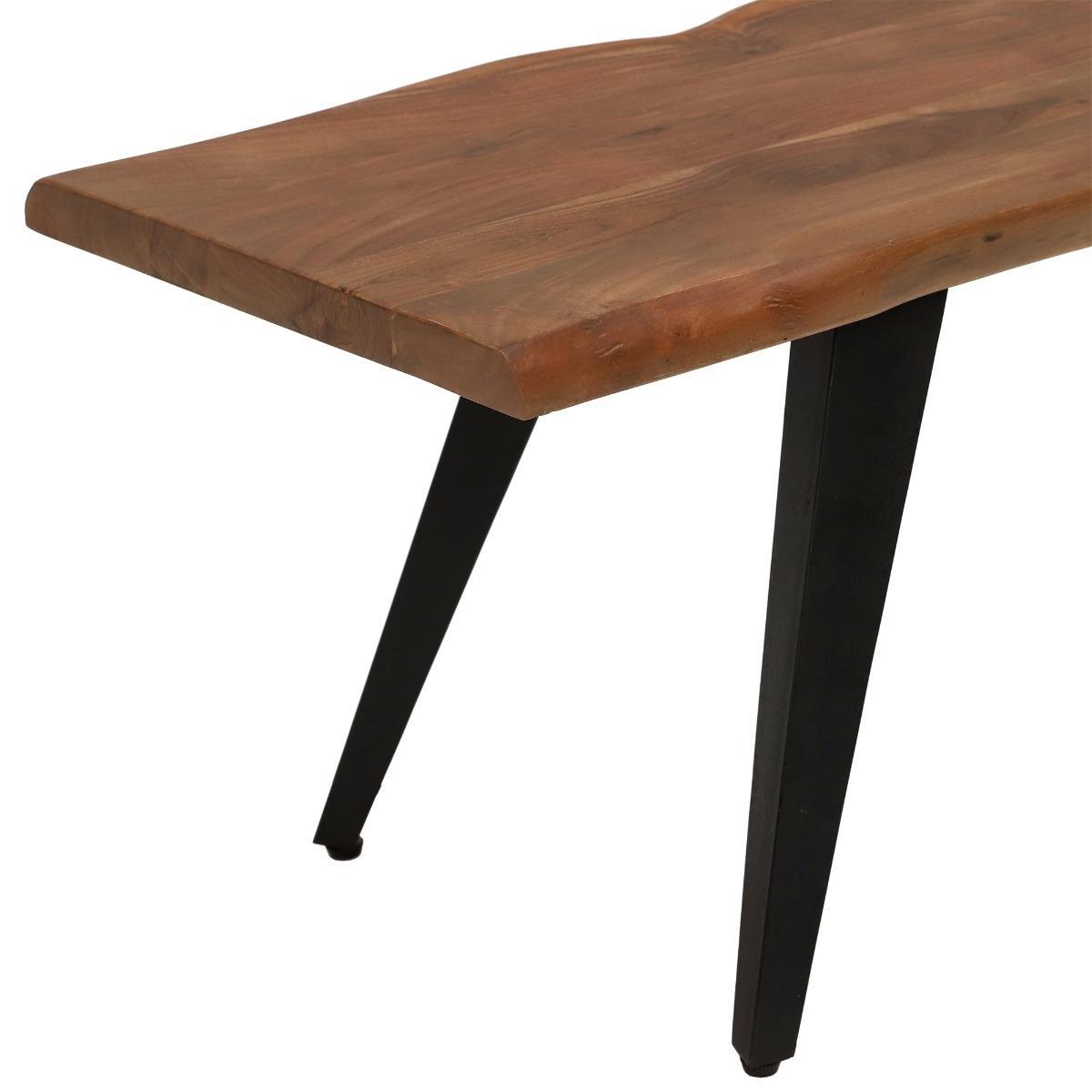 Design. The Kriss Bench provides a versatile and relaxed seating choice which complements the coordinating Kriss dining table. The solid Acacia wood top and coated black metal legs come together for the perfect combination of rustic and industrial.