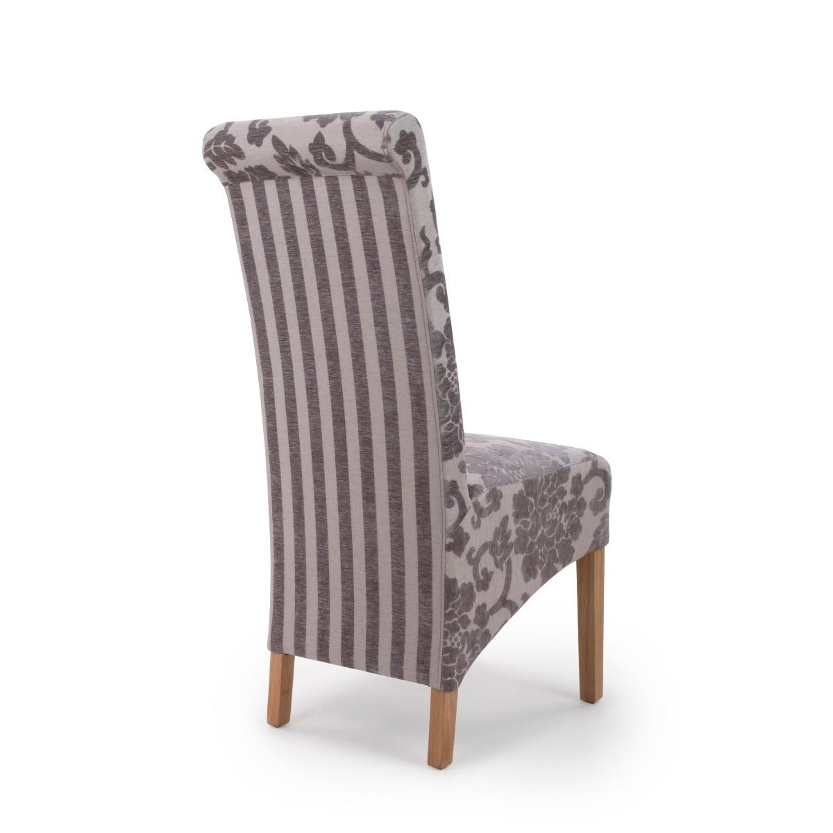 The Krista Dining Chairs from Shankar are a design classic. The roll back feature of the chair adds a certain permanence to the look and allows the chairs themselves to become a focal point in a dining room. The quality of the materials and construction techniques offers the ideal combination of practicality, comfort and style. The definition of the word ‘Baroque’ is an “artistic style that exaggerates motion to produce drama, opulence, and grandeur”. The Krista Baroque Chairs certainly fulfil this definition. The high quality, patterned mink coloured velvet fabric is double stitched to ensure maximum material strength and expertly upholstered. The chairs seat is sprung using steel 'S' springs, and belted with nylon strapping. This makes the chair very comfortable but also adds to the longevity of the piece by helping the chair to maintain its shape and bounce. The Krista also features invisible nylon foot caps which helps to protect your floor. The Krista Baroque Chairs are sold in sets of two.