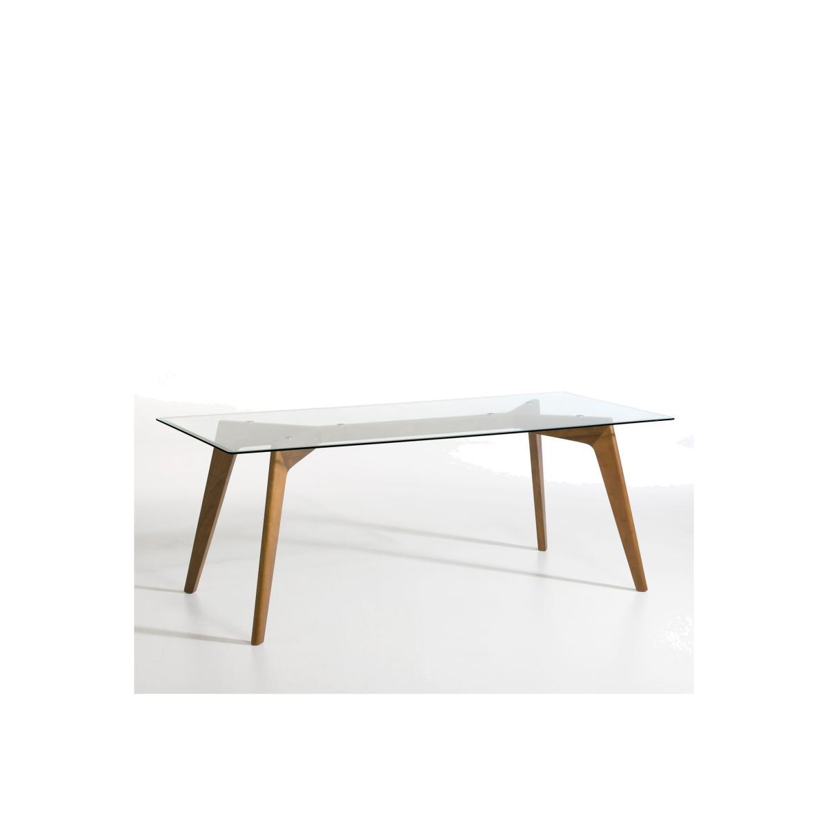 Kristal Rectangular Retro-Style Table in Glass/Oak (Seats 8)