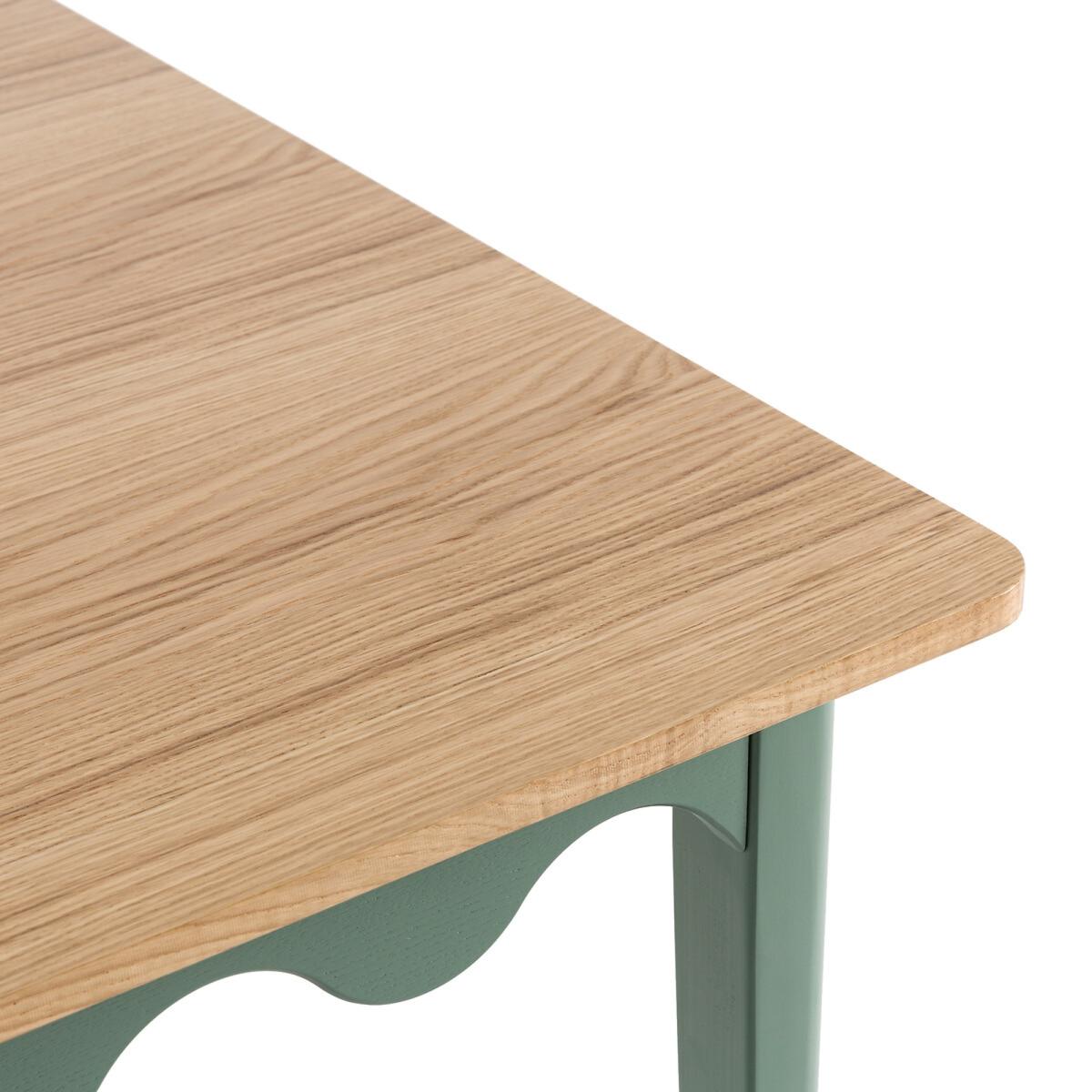 I love how the Kristen table combines a natural oak veneer top with painted legs, making it versatile for both classic and contemporary interiors. It works particularly well in cosy kitchens or casual dining spaces, where its modest size and simple design keep the look relaxed yet elegant. For styling, add a mix of colourful or patterned tableware to create interest, or keep it pared-back with neutral placemats for a minimalist feel. The green-painted legs provide an unexpected pop of colour, so pairing it with vintage chairs or contemporary designs can really help it stand out without overwhelming the space. Overall, it’s a practical, charming piece that balances function and style effortlessly.