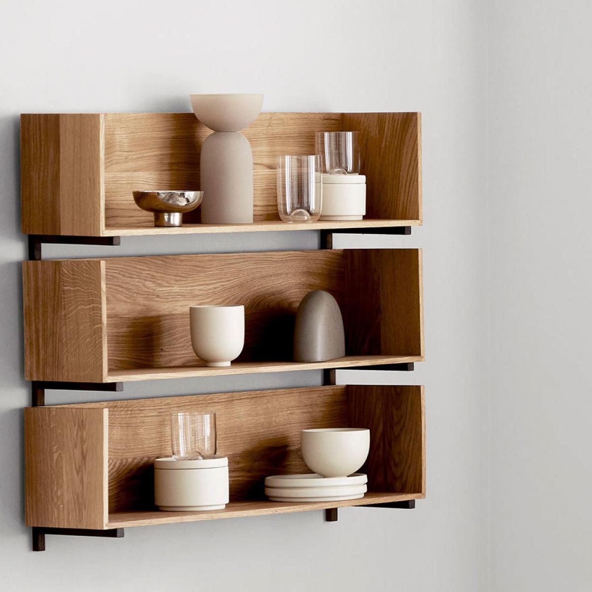 Kristina Dam Studio Stack wall shelf Oak consoles in dark oiled walnut