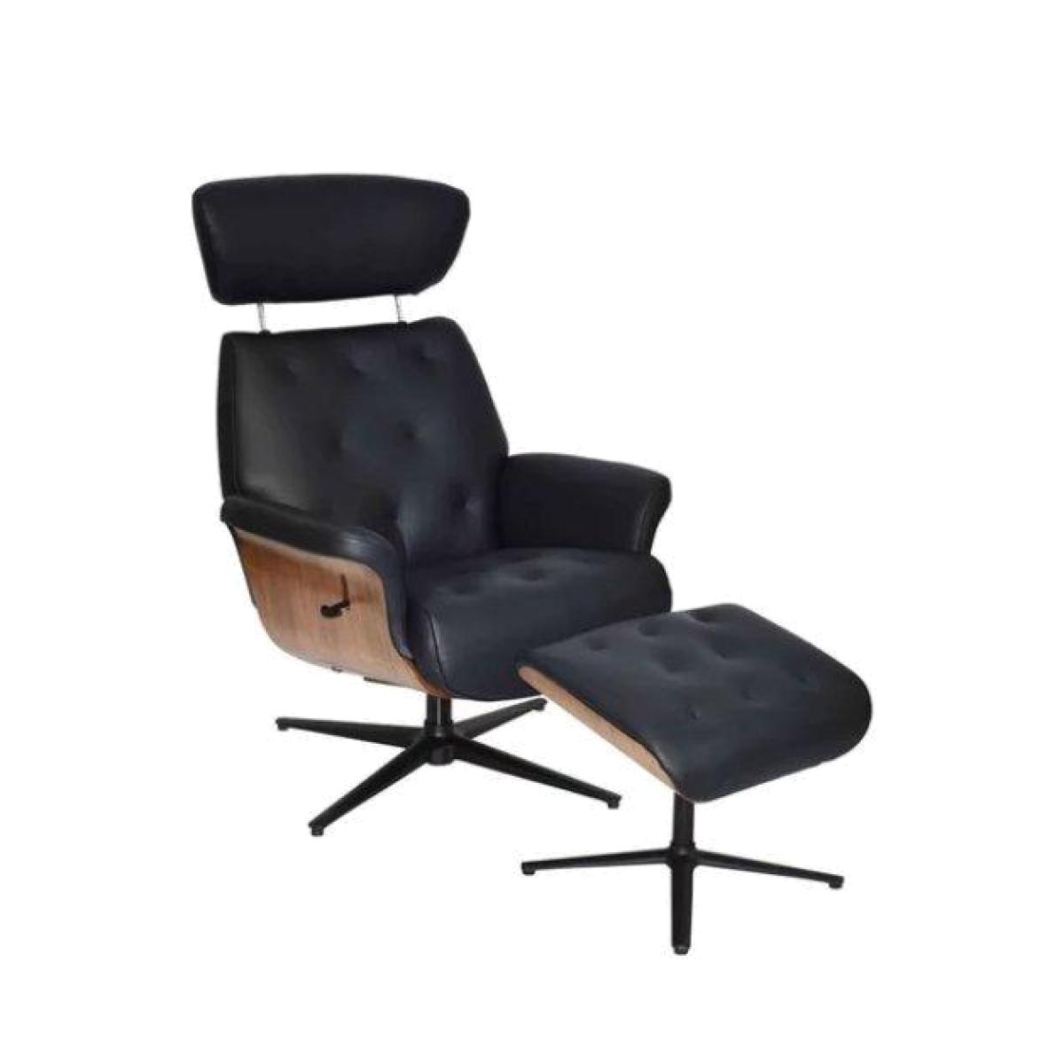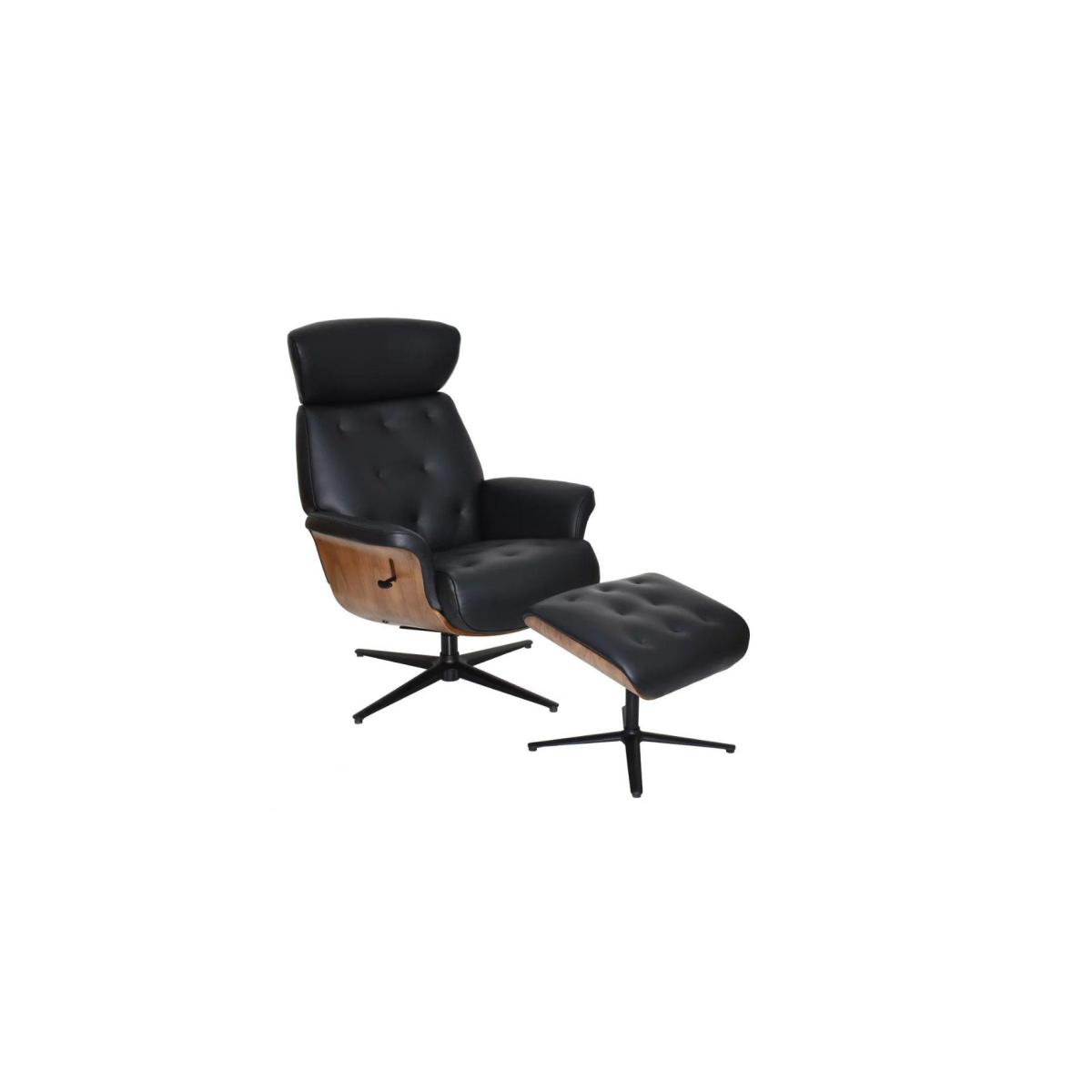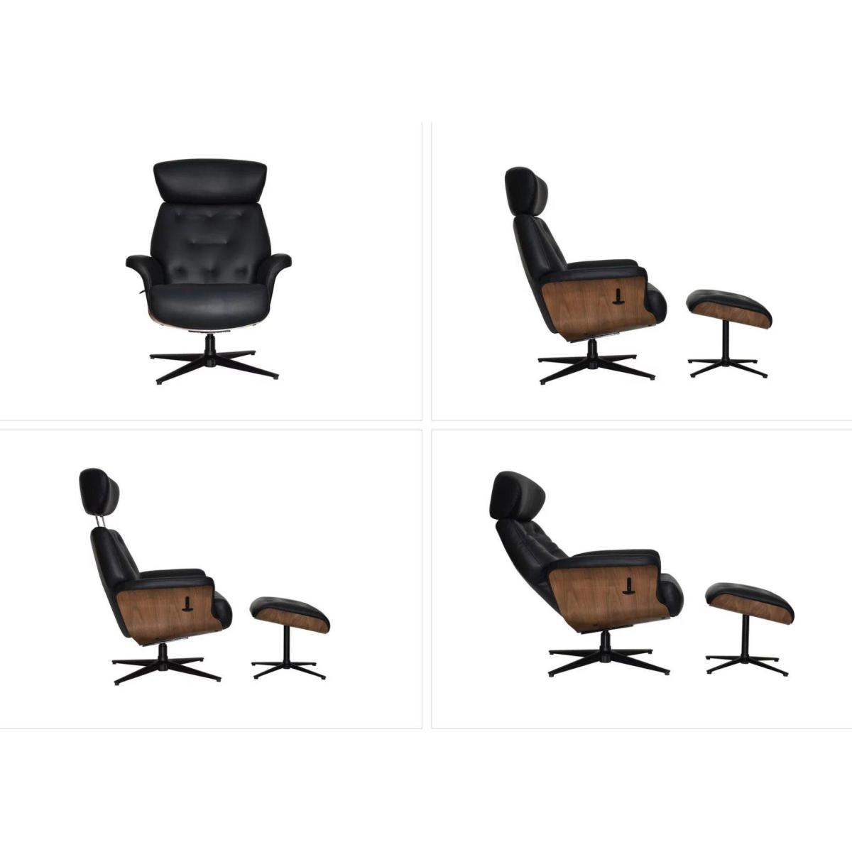 Delivery 7-14 DaysKick back in cool style with the Kristof swivel recliner chair and footstool. With its polished walnut frame and sumptuously soft upholstery, it's the very definition of statement seating. Why you'll love it Distinctive swivel recliner chair and footstool inspired by iconic 1950s design. Understated retro style. Generously proportioned for the ultimate in luxurious comfort. Chair and footstool have a curved walnut frame. Chair has lever-operated manual recliner and adjustable telescopic headrest. Upholstered in leather and faux leather for a premium feel at a great price. In a selection of sophisticated colours. What you need to know Medium comfort level. Moulded foam cushioning. Metal frame. 100% leather on seat, inside back, inside arms and footstool. Faux leather on outer back and sides. Black or chrome base colour is dependent on upholstery colour. Maximum user weight 115kg. Please allow time for the recliner mechanism to ease. Minor gaps are necessary to ensure ease of motion and may be exaggerated depending on floor type. Leather has unique marks and characteristics with variance in colour and texture. Leather softens with use. Smoothing the tops of leather cushions prevents signs of visual comfort. Please read our upholstery care guide for more advice. Assembly required.