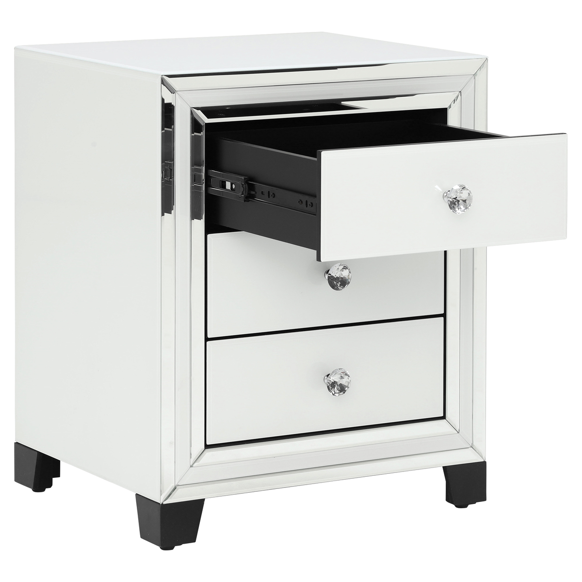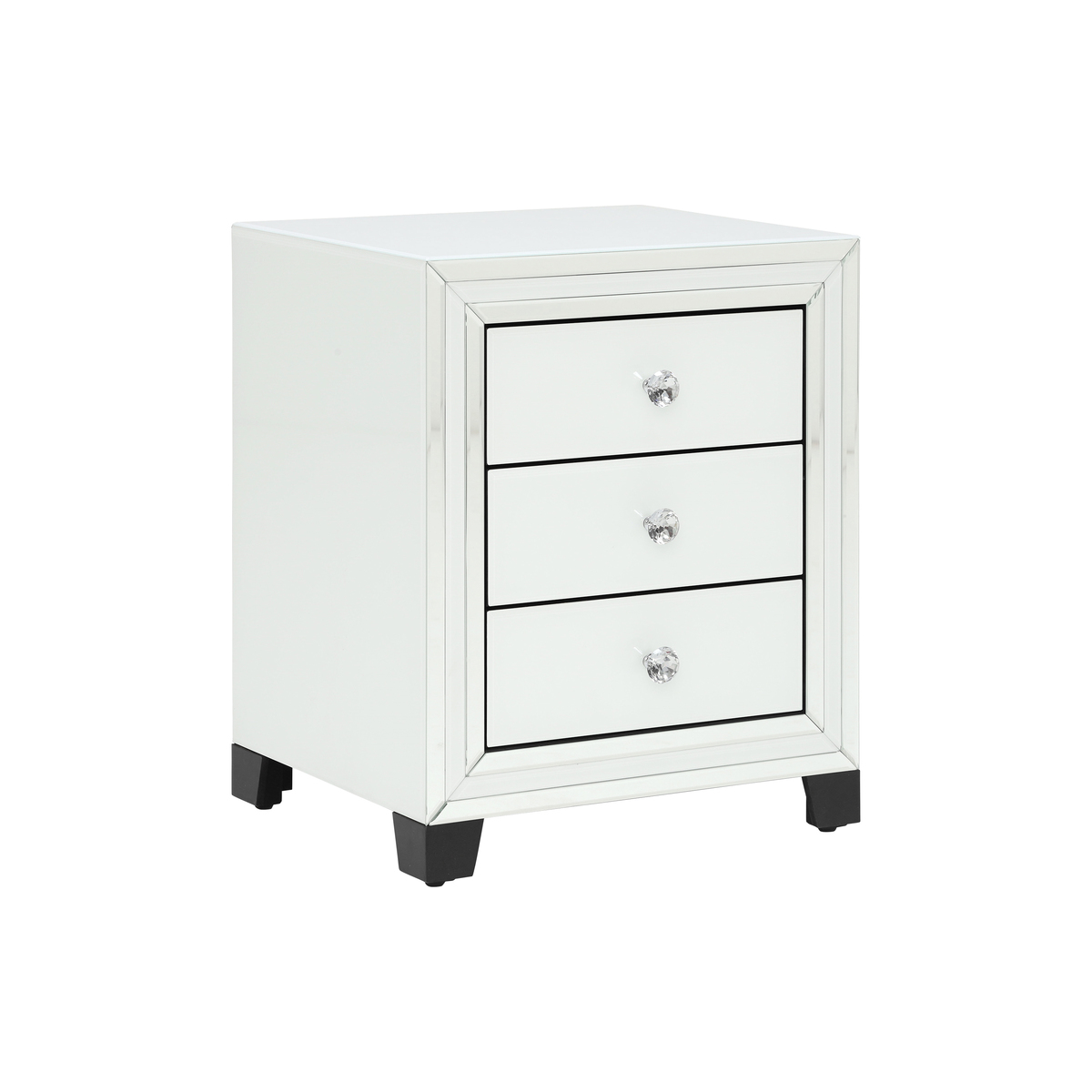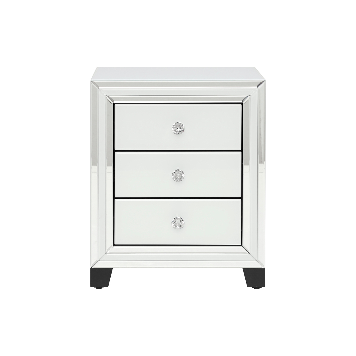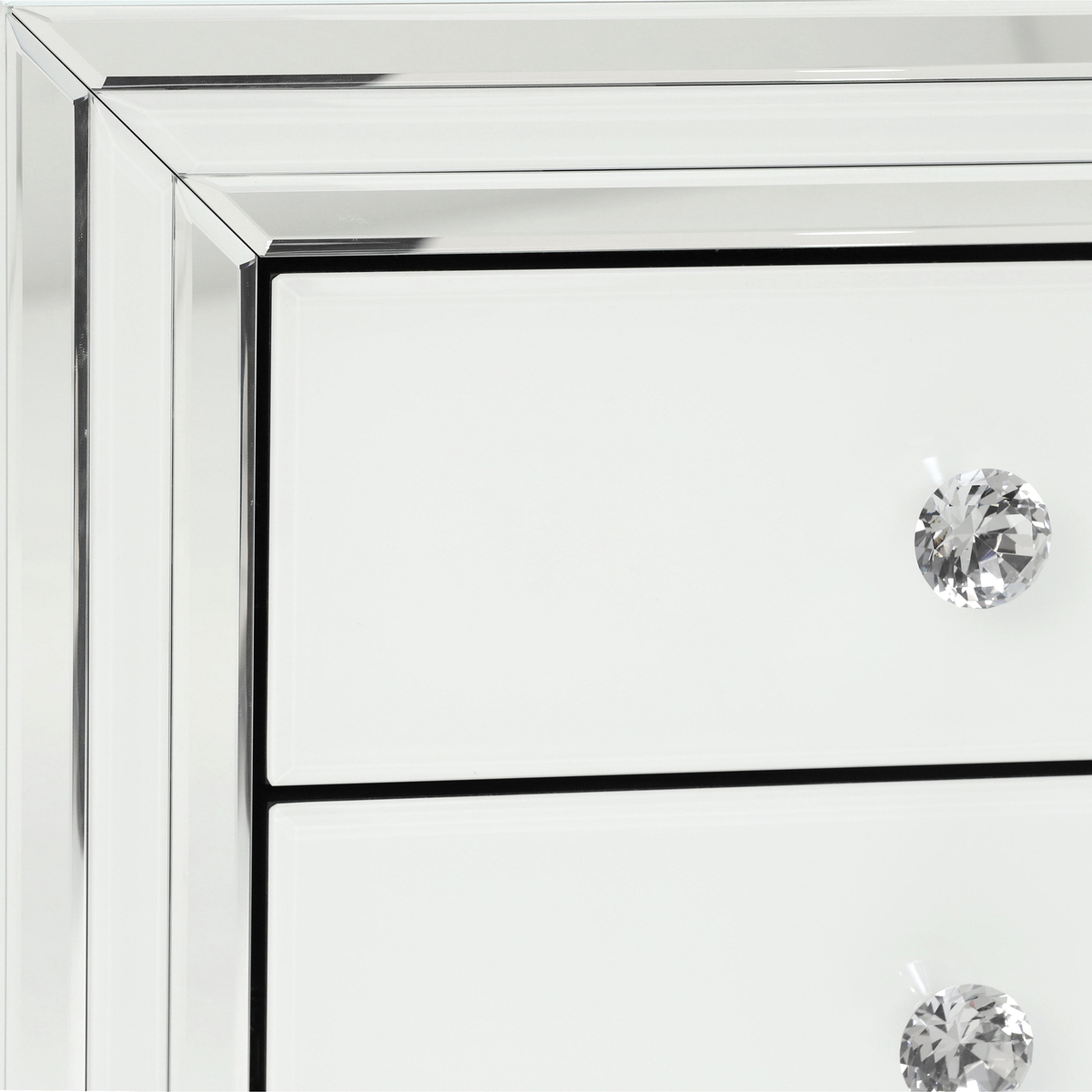 Krystal 3 Drawer Bedside Cabinet, White Glass and Mirror