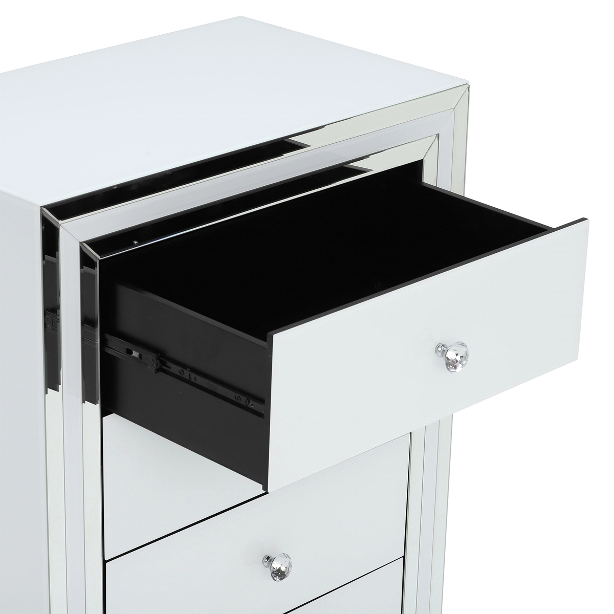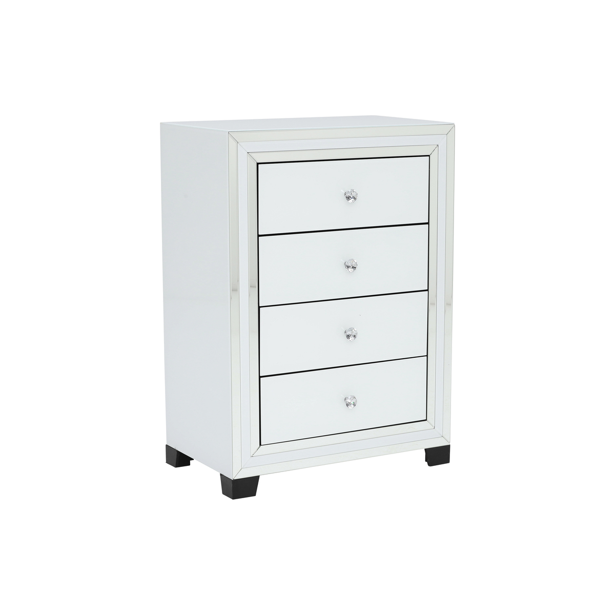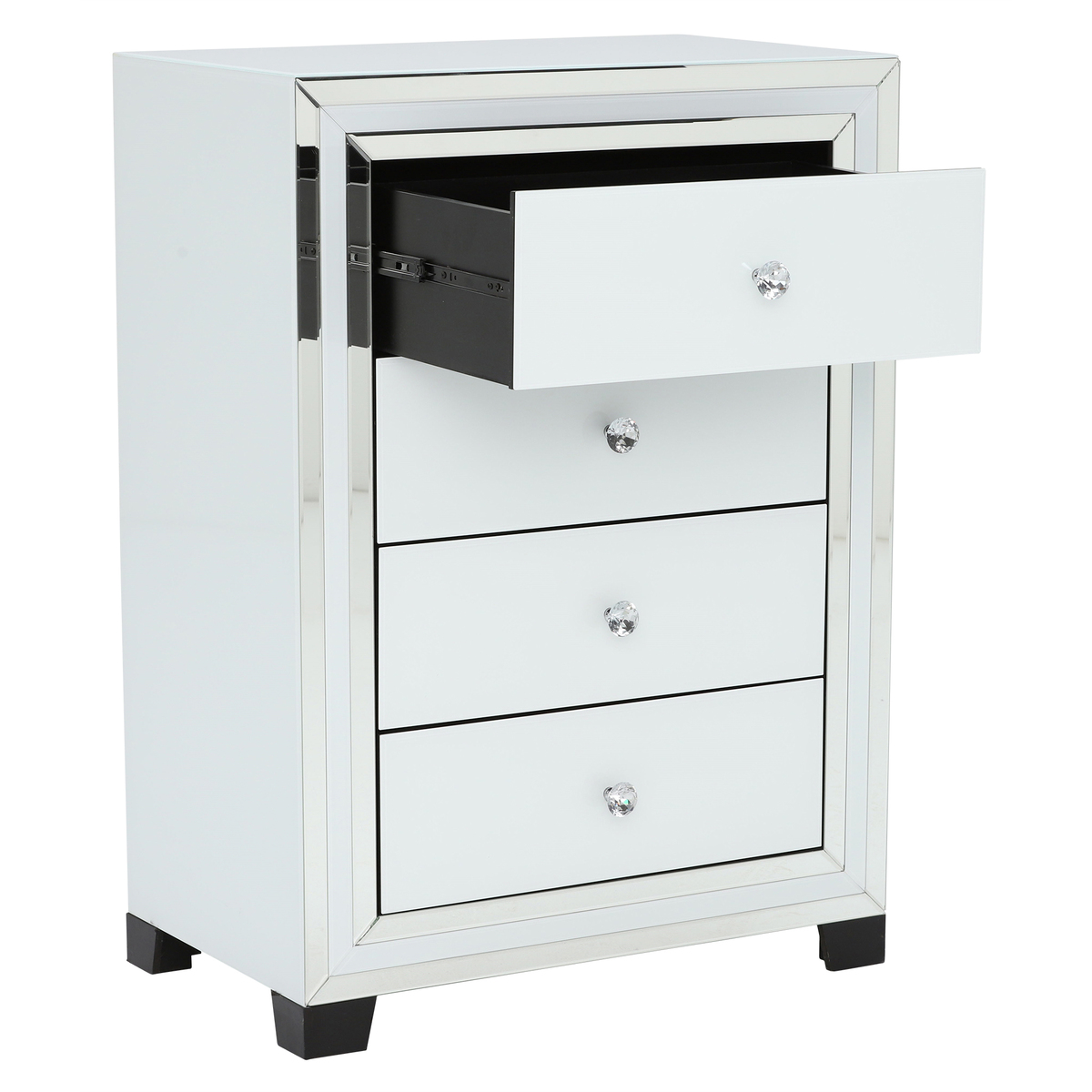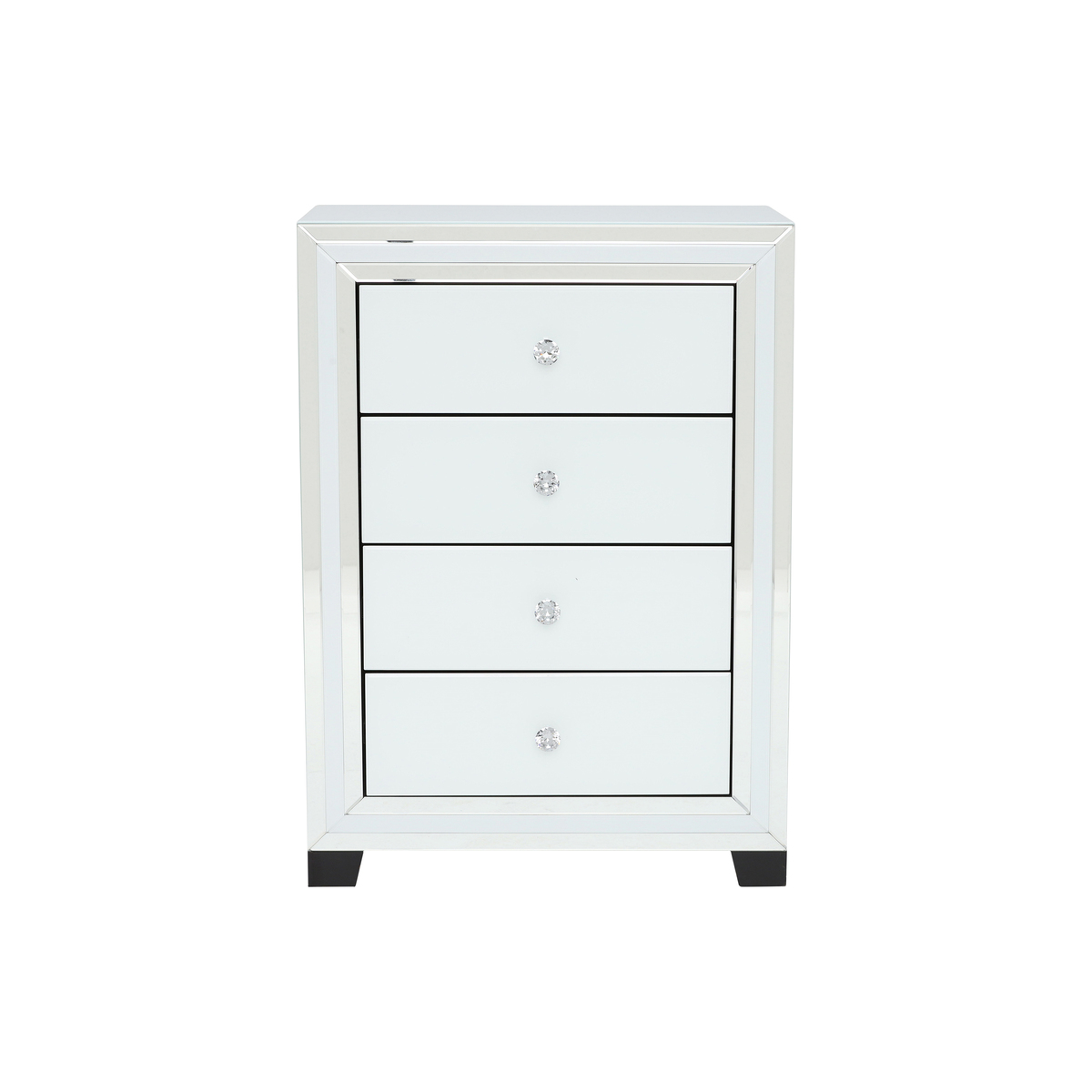 Krystal 4 Drawer Chest, White Glass and Mirror