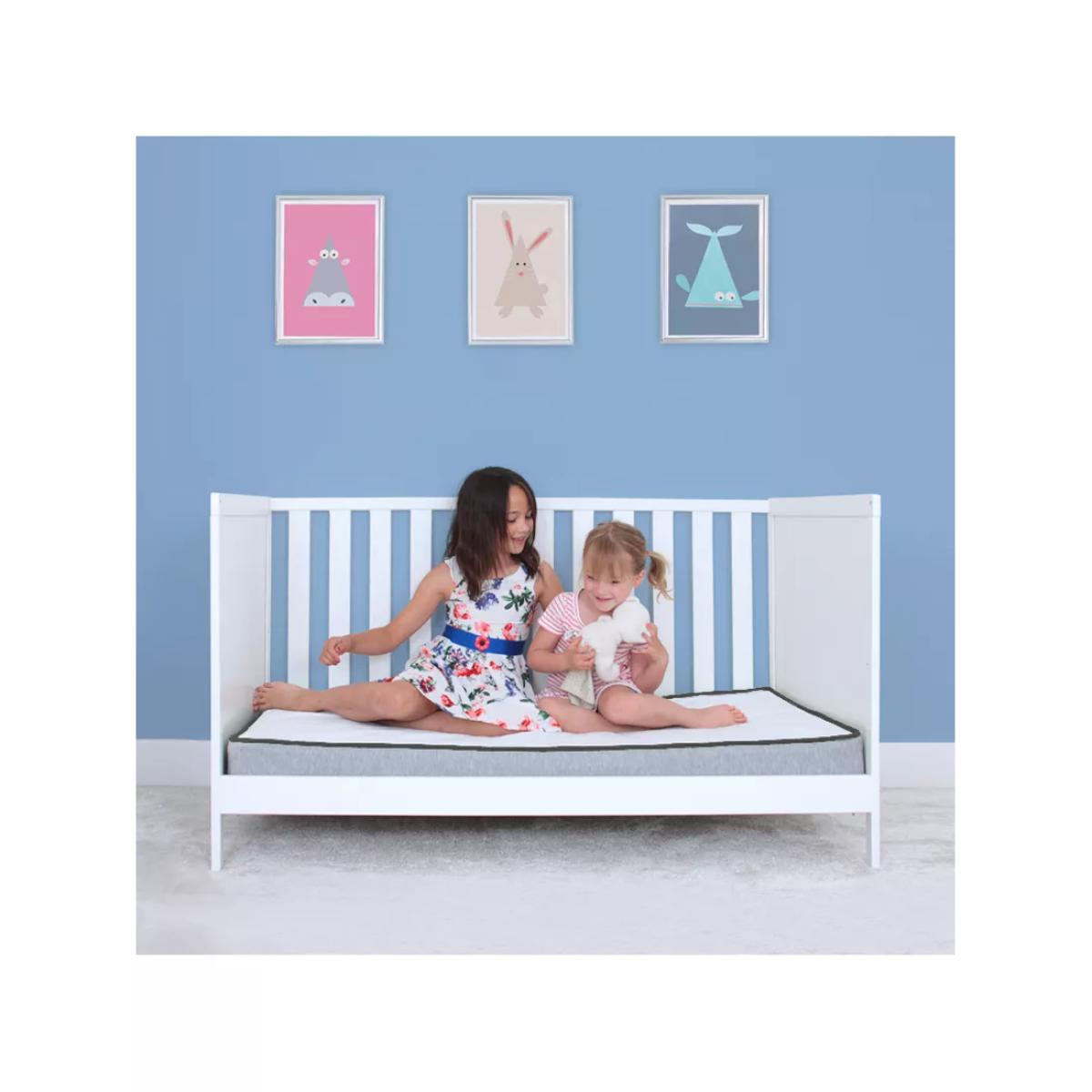 Ensure a great night's sleep for your little one with this hypoallergenic cotbed mattress from Kub. Handmade with British dent resistant eco-fibre and high-density pocket springs, it ensures your little one is supported no matter how much they wriggle around. The unique open cell structure reacts and responds to the baby's body heat and weight by moulding to the contours of the body, therefore allowing the perfect airflow and keeping baby's skin nice and soft. Plus the mattress comes with an Innercare water repellent non-removable cover, to keep the interior nice dry, giving your mattress that extra protection against accidents. Key Features: Air Tech moisture management fabric cover, that's washable at 40 degrees Dent resistant Eco fibre and High-density pocket springs Hypoallergenic Innercare waterrepellent non removable cover, keeps interior dry