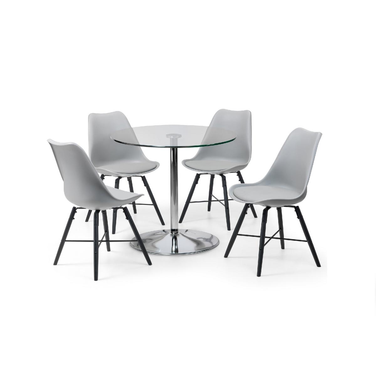 Dine in class and glass, this Kudos dining table set is perfect for adding a modern touch to your home. This dining table is made with a polished chrome base and tempered glass top for a sleek and durable construction.