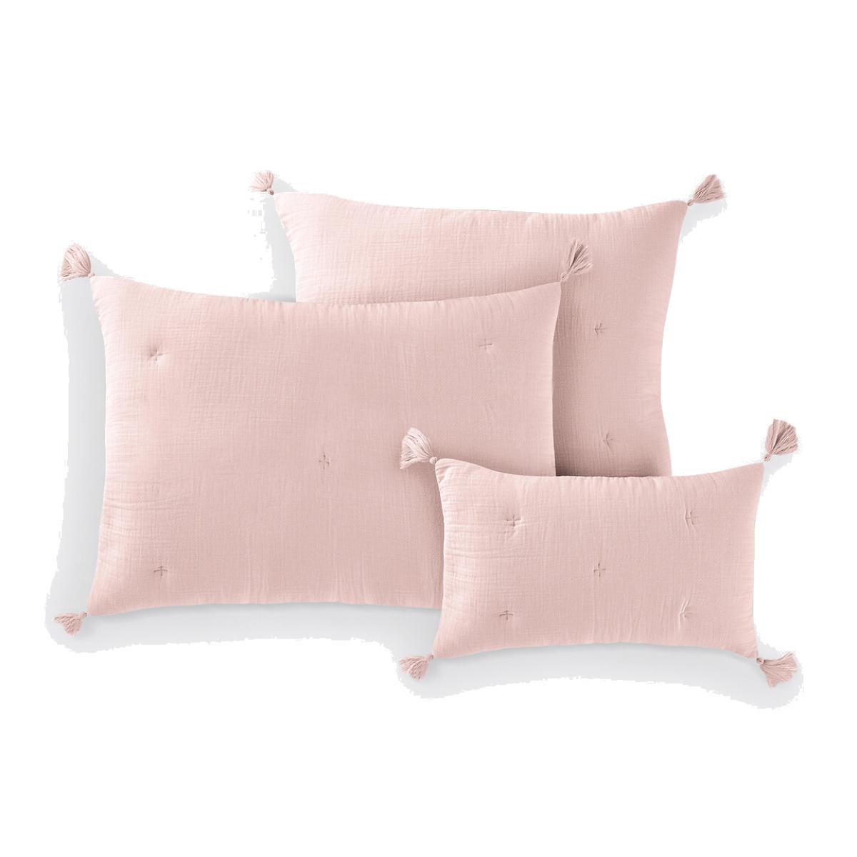An additional touch of charm for the bedroom or living room, the Kumla cushion cover gives a very cosy atmosphere. Product Details • Cover in pure cotton muslin • 100% polyester fill • Tone-on-tone cross-stitch embroidered details • Tassels on all 4 corners of the cushion cover • Flap fastening • Customisable article, to be found in the personalised household linen tab. Care Advice • Machine washable at 30°CDimensions • 50 x 30cm • 65 x 65cm • 50 x 70cm • OEKO-TEX® Standard 100. Standard 100 certification by OEKO-TEX® tests textile products for harmful substances via an independent, international label.