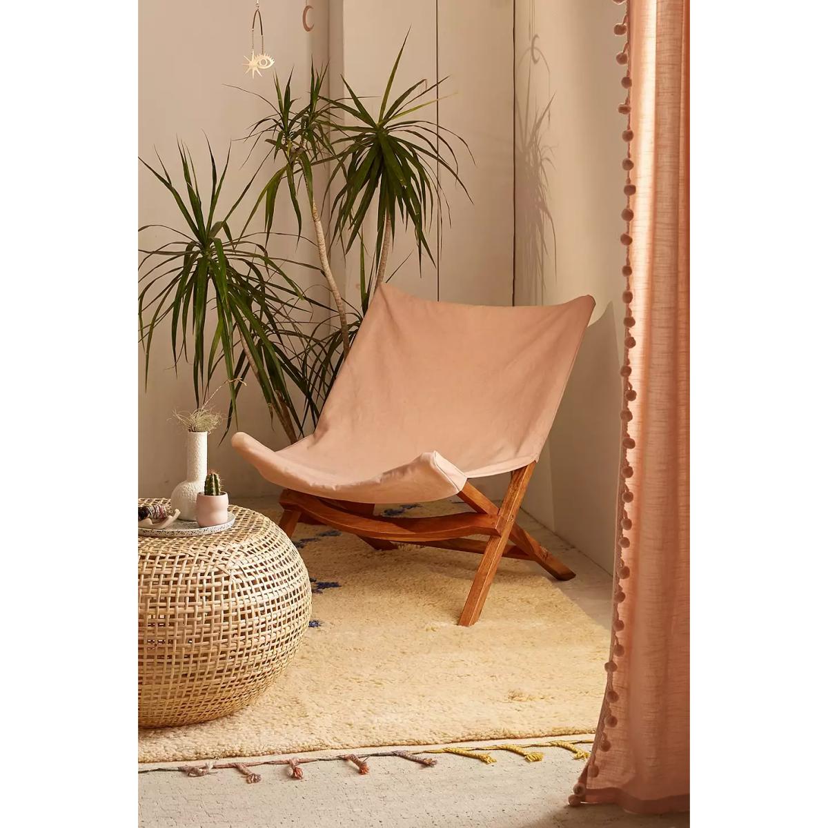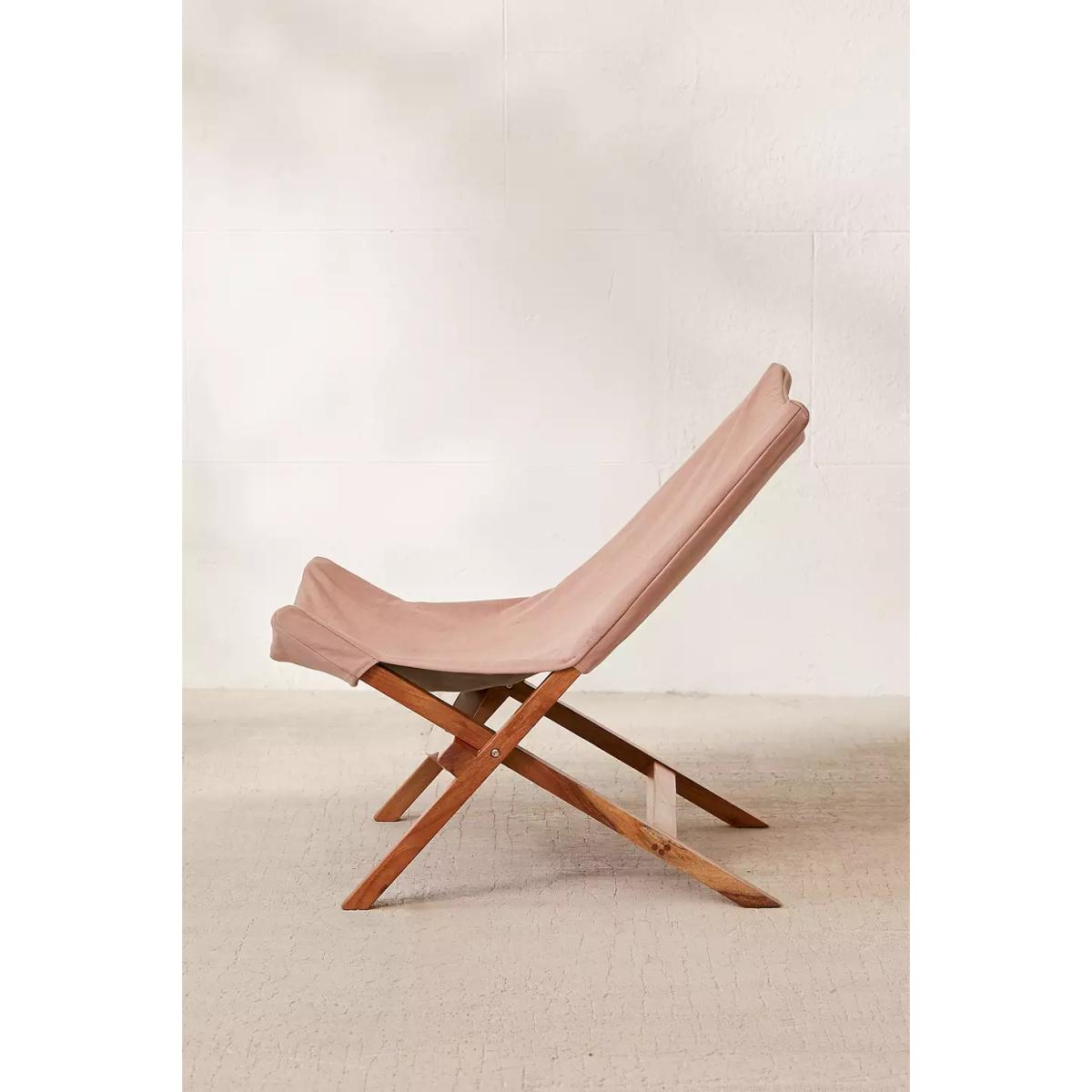 Fold-up deck chair with a natural wood and canvas cover design, the perfect seating solution for your indoor space. Features a low profile with a soft textile chair cover and cross-over legs. *Online return only. This item cannot be returned instore. Please note furniture items currently cannot be shipped to Northern Ireland or The Republic of Ireland. Delivery of large furniture items may take 1-2 weeks and are therefore not eligible for Next Day Delivery.* **Content + Care** \- Acacia wood, Fabric \- Wipe clean **Size** \- 63cm x 79cm x 75cm