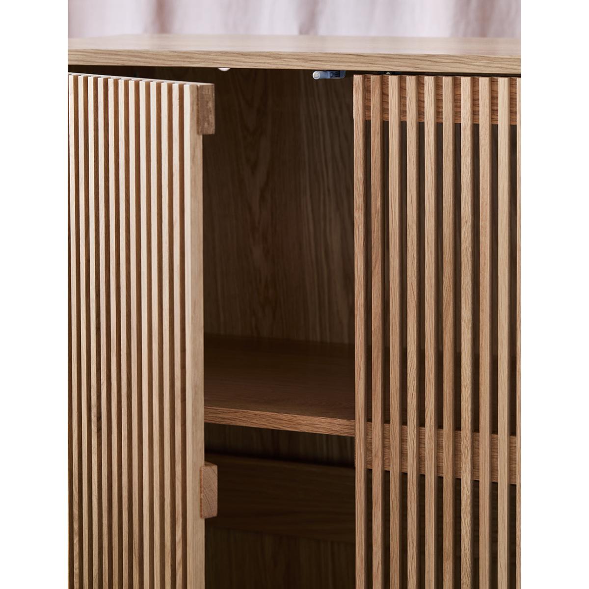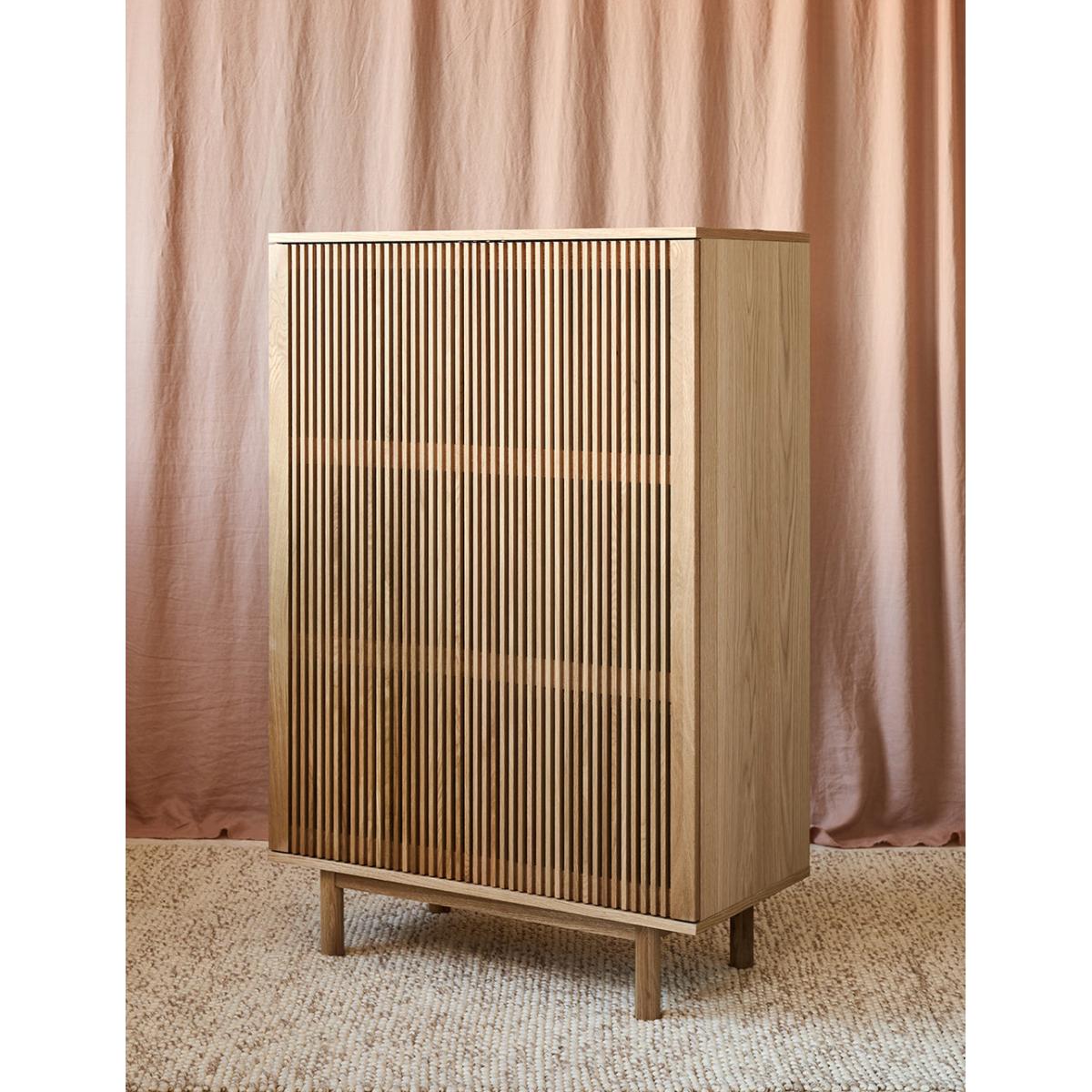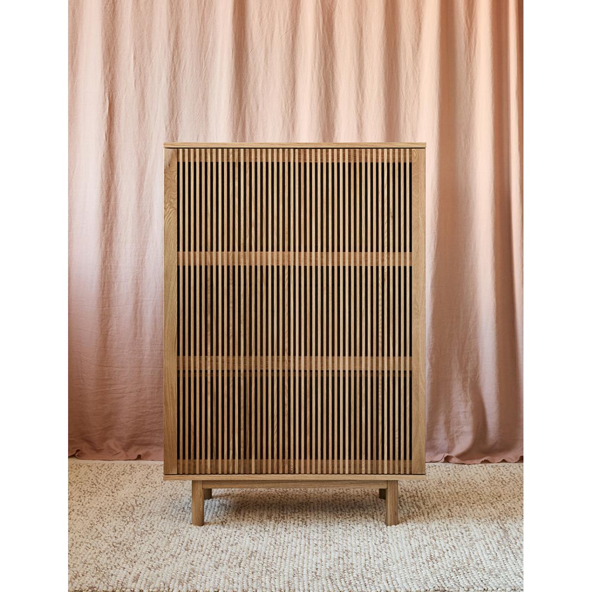 So named after a Japanese carpentry technique, this cabinet nods to the east but with it's (lovely) feet firmly rooted in Scandi modernism. Made from white oak, this piece is super useful from anywhere from the dining room to the office. The lattice work gives the impression of airiness which is really nice on such a solid piece. Use for anything from crockery to files. We also offer a matching sideboard and TV unit. A modern oak lattice cabinet