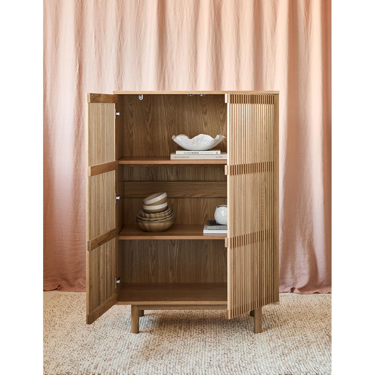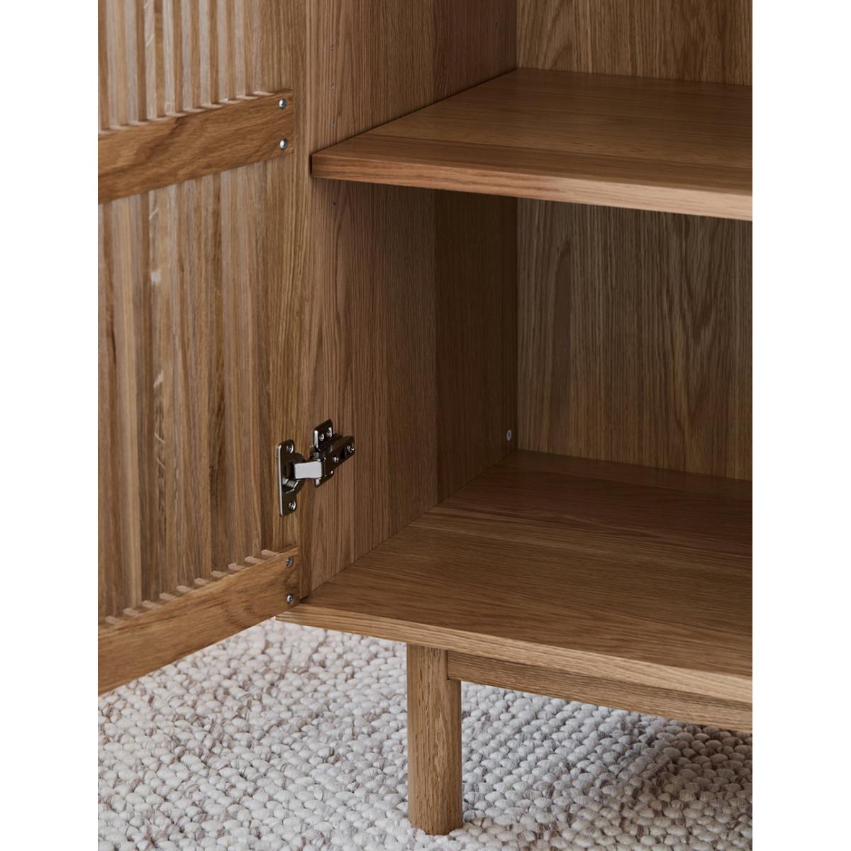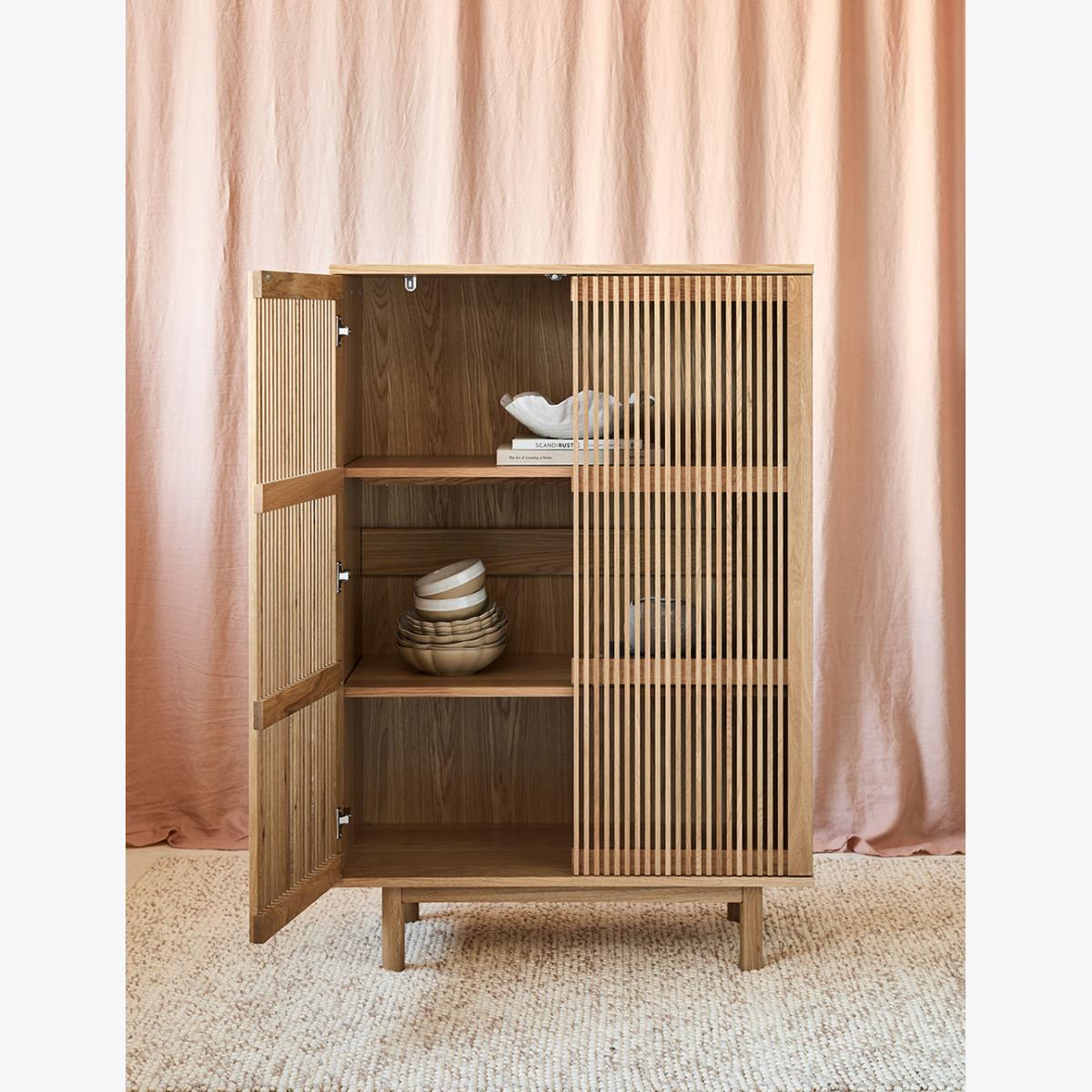 So named after a Japanese carpentry technique, this cabinet nods to the east but with it's (lovely) feet firmly rooted in Scandi modernism. Made from white oak, this piece is super useful from anywhere from the dining room to the office. The lattice work gives the impression of airiness which is really nice on such a solid piece. Use for anything from crockery to files. We also offer a matching sideboard and TV unit. A modern oak lattice cabinet