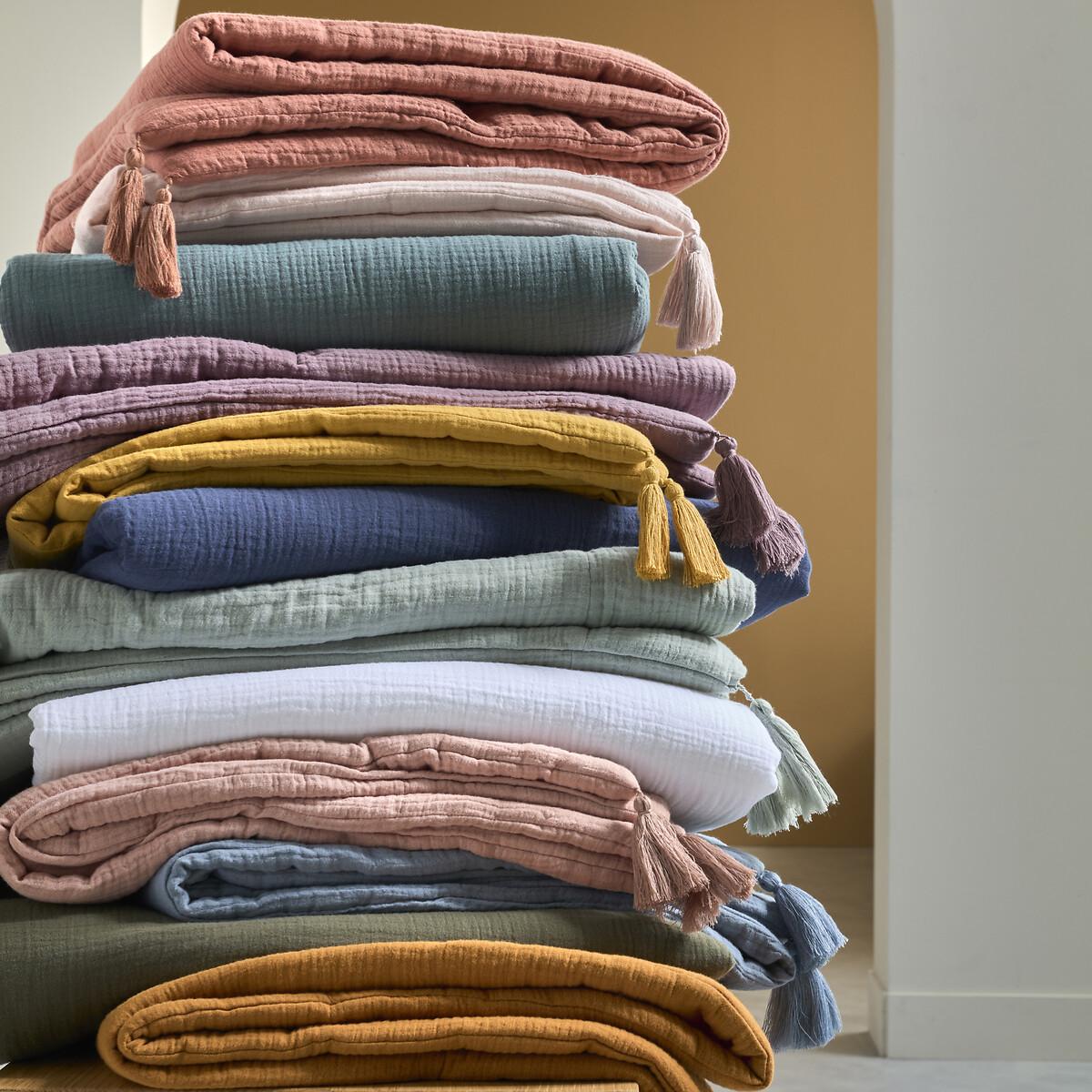 A little extra touch of charm for the bedroom, the Kumla plain quilt creates a cosy atmosphere. Product Details • 100% cotton cover, cotton muslin • 100% polyester fill • Tone-on-tone cross-stitch embroidered details • Tassels at 4 corners of the quilt Shop the full Kumla range on La Redoute. Care Advice • Washable at 40°C • By washing your laundry at 30°C instead of 40°C, you limit energy consumption. Sizes • 90 x 190cm • 150 x 150cm • OEKO-TEX® Standard 100. Standard 100 certification by OEKO-TEX® tests textile products for harmful substances via an independent, international label.