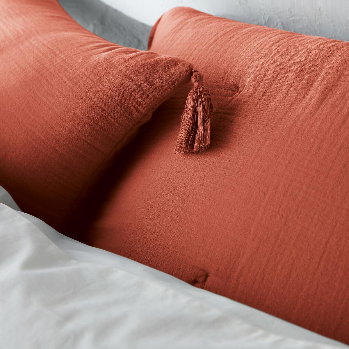 A little extra touch of charm for the bedroom, the Kumla plain quilt creates a cosy atmosphere. Product Details • 100% cotton cover, cotton muslin • 100% polyester fill • Tone-on-tone cross-stitch embroidered details • Tassels at 4 corners of the quilt Shop the full Kumla range on La Redoute. Care Advice • Washable at 40°C • By washing your laundry at 30°C instead of 40°C, you limit energy consumption. Sizes • 90 x 190cm • 150 x 150cm • OEKO-TEX® Standard 100. Standard 100 certification by OEKO-TEX® tests textile products for harmful substances via an independent, international label.