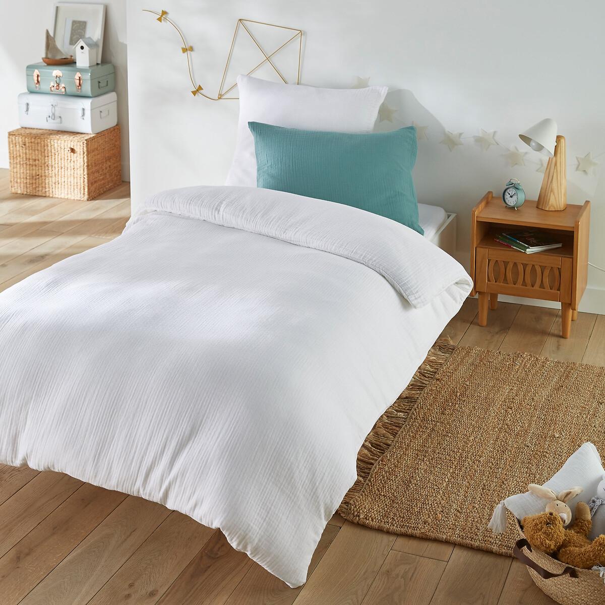 Available in very contemporary colours, the Kumla fitted sheet in cotton gauze gives a cosy and warm atmosphere to your child's room. Cotton muslin is light, supple and super soft. Delicately embossed, it does not require ironing. Product Details • 100% cotton • Flap height 30cm for thick mattresses. Care Advice • Machine washable at 60°C • By washing your laundry at 40°C instead of 60°C, you limit energy consumption • Product will regain its texture after tumble drying • The cotton muslin may show slight marks due to packaging creases. We recommend that you wash the product as soon as you receive it, and then tumble dry it to restore its look and the beautiful waffle effect. Dimensions • 90 x 190cm: Single • MADE IN PORTUGAL. • OEKO-TEX® Standard 100. Standard 100 certification by OEKO-TEX® tests textile products for harmful substances via an independent, international label.