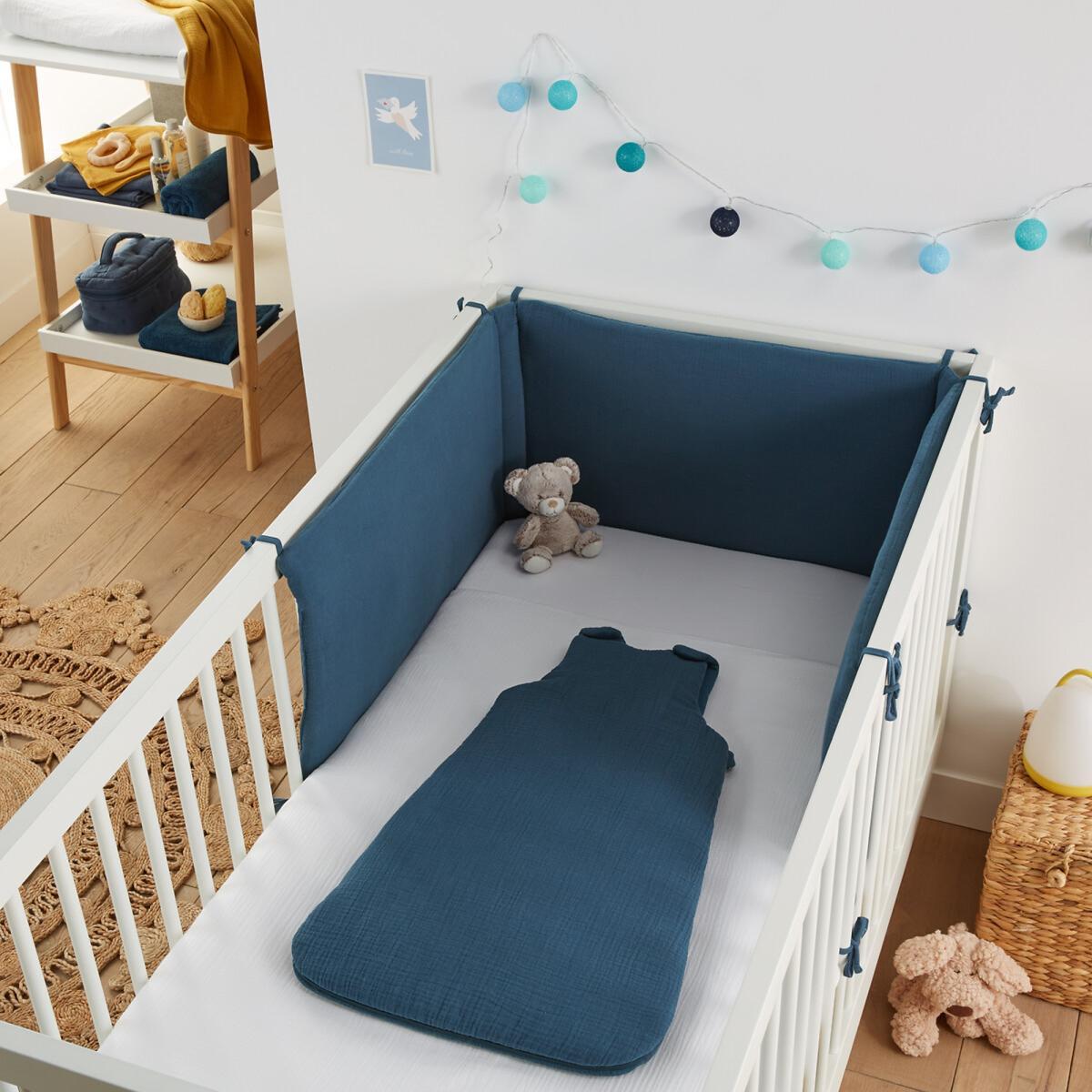 The Kumla cot bumper is made of cotton muslin for a small touch of charm and softness. Light and airy, it creates a cuddly and comfortable atmosphere in your baby's room!