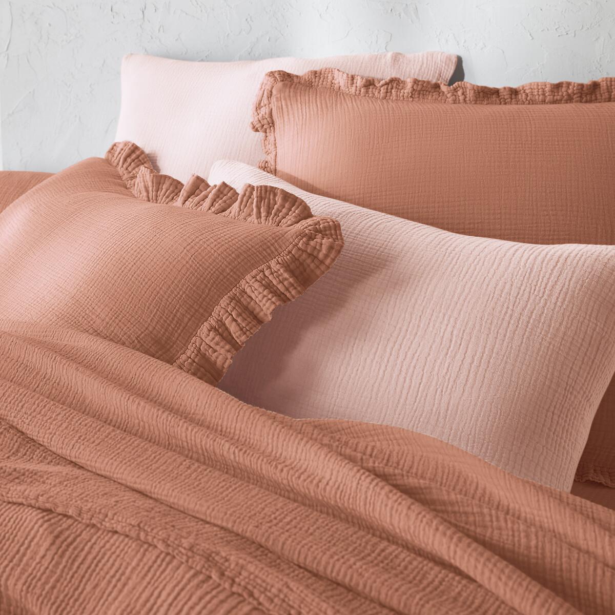 Available in very contemporary colours, the Kumla duvet cover in cotton gauze gives a cosy and warm atmosphere to the bedroom.. Cotton muslin is light, supple and super soft. Delicately embossed, it does not require ironing. Product Details • 100% cotton • Cotton muslin • Straight buttoned hem • Made in Portugal Care Advice • Machine washable at 60°C • By washing your laundry at 40°C instead of 60°C, you limit energy consumption • Product will regain its texture after tumble drying • The cotton muslin may show slight marks due to packaging creases. We recommend that you wash the product as soon as you receive it, and then tumble dry it to restore its look and the beautiful waffle effect. Dimensions • 140 x 200cm: Single • 200 x 200cm: Double • 240 x 220cm: King • 260 x 240cm: King • MADE IN PORTUGAL. • OEKO-TEX® Standard 100. Standard 100 certification by OEKO-TEX® tests textile products for harmful substances via an independent, international label.