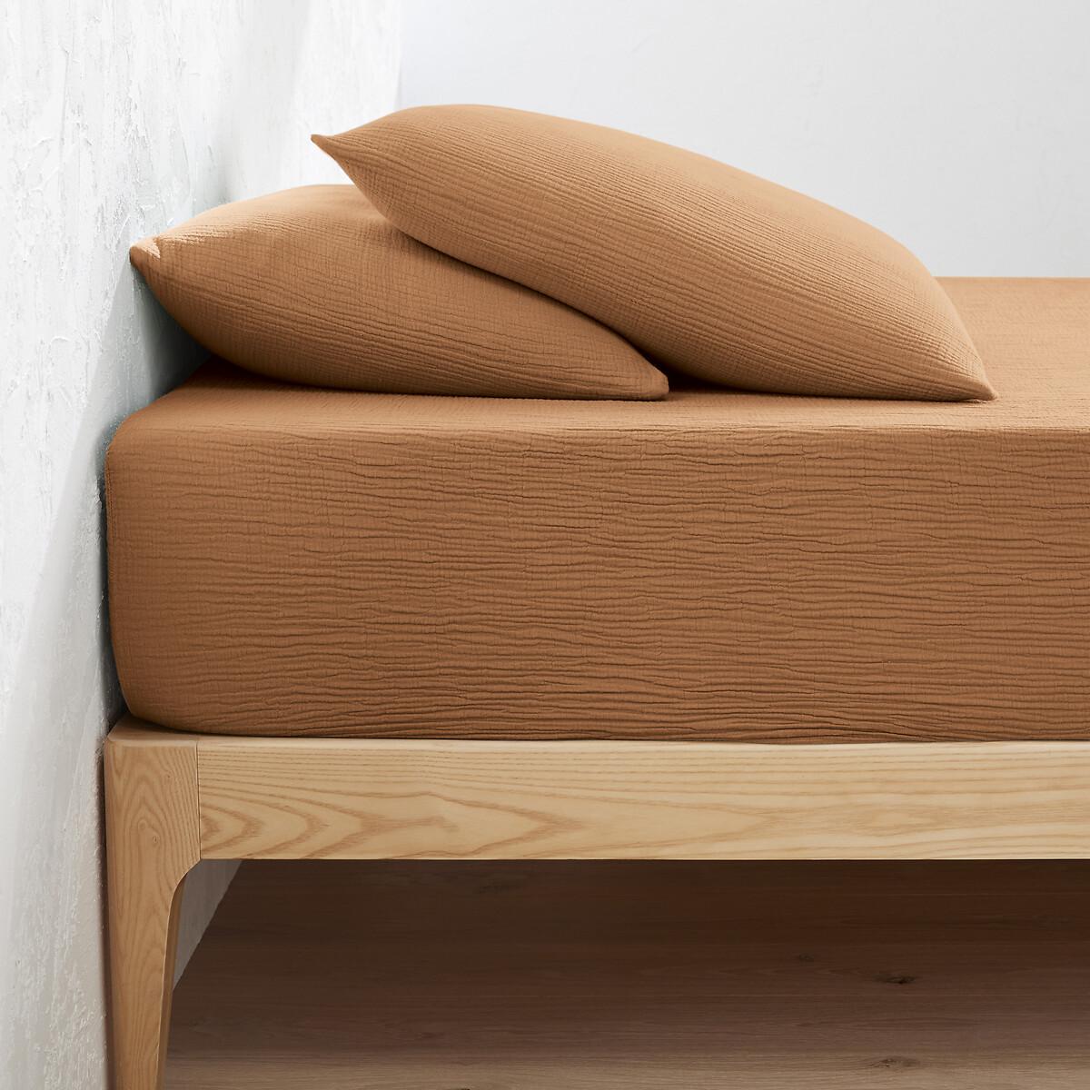 Available in very contemporary colours, the Kumla fitted sheet in cotton gauze gives a cosy and warm atmosphere to the bedroom.. Cotton muslin is light, supple and super soft. Delicately embossed, it does not require ironing. Product Details • 100% cotton • Cotton muslin • Flap height 30cm for thick mattresses • 4 elasticated corners Care Advice • Machine washable at 60°C • By washing your laundry at 40°C instead of 60°C, you limit energy consumption • Product will regain its texture after tumble drying • The cotton muslin may show slight marks due to packaging creases. We recommend that you wash the product as soon as you receive it, and then tumble dry it to restore its look and the beautiful waffle effect. Dimensions • 90 x 190cm: Single • 140 x 190cm: King • 140 x 200cm: King • 160 x 200cm: King • 180 x 200cm: King • MADE IN PORTUGAL. • OEKO-TEX® Standard 100. Standard 100 certification by OEKO-TEX® tests textile products for harmful substances via an independent, international label.