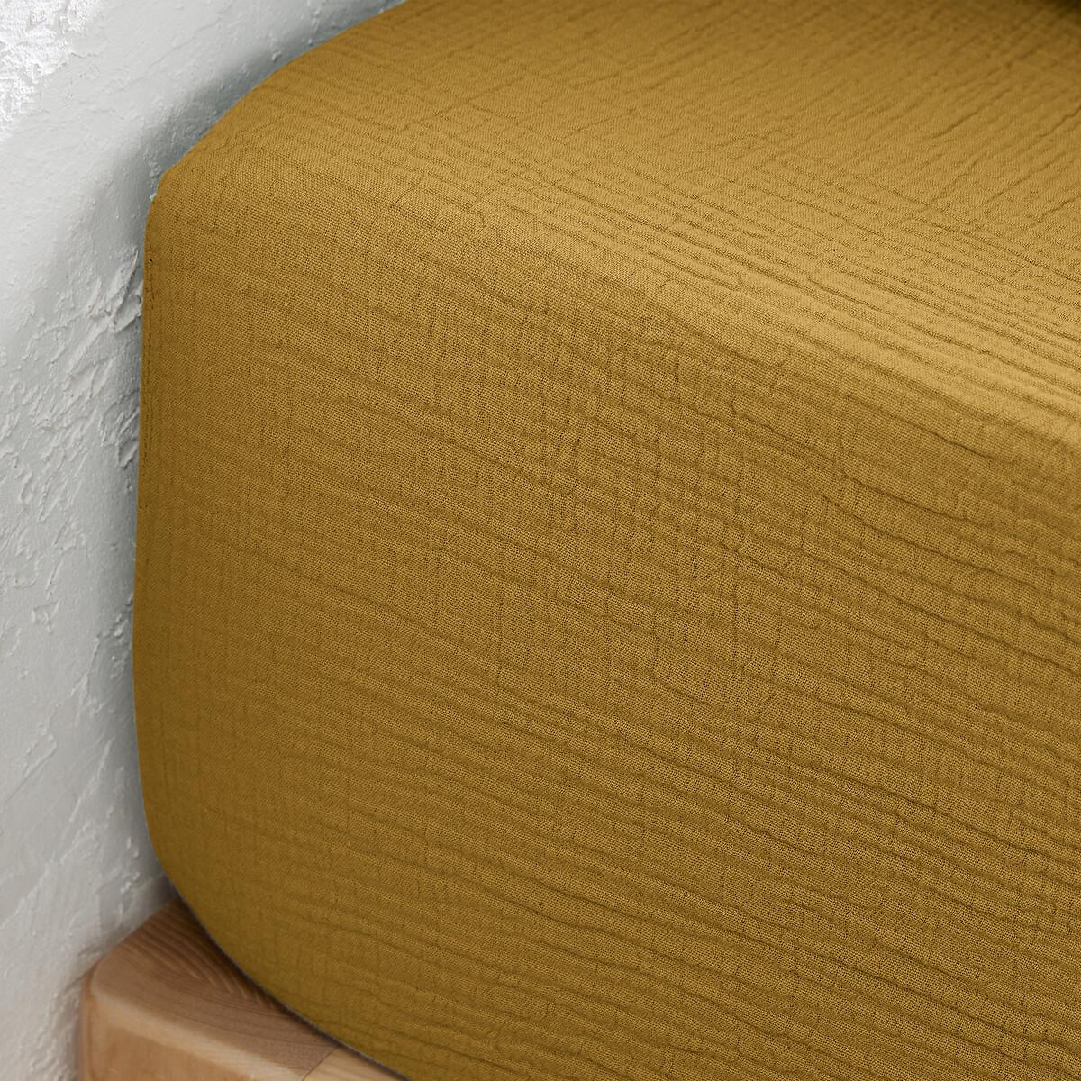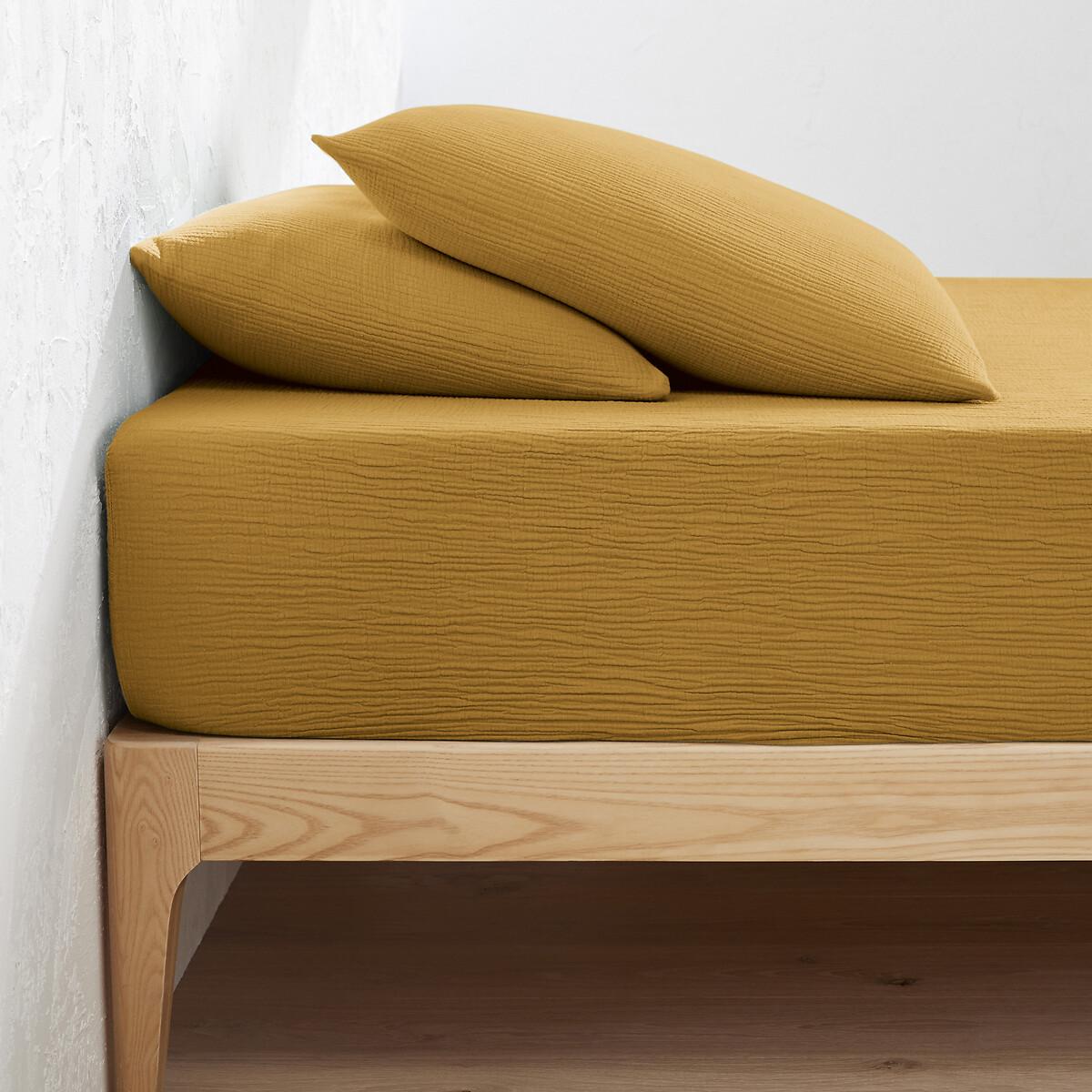 Available in very contemporary colours, the Kumla fitted sheet in cotton gauze gives a cosy and warm atmosphere to the bedroom.. Cotton muslin is light, supple and super soft. Delicately embossed, it does not require ironing. Product Details • 100% cotton • Cotton muslin • Flap height 30cm for thick mattresses • 4 elasticated corners Care Advice • Machine washable at 60°C • By washing your laundry at 40°C instead of 60°C, you limit energy consumption • Product will regain its texture after tumble drying • The cotton muslin may show slight marks due to packaging creases. We recommend that you wash the product as soon as you receive it, and then tumble dry it to restore its look and the beautiful waffle effect. Dimensions • 90 x 190cm: Single • 140 x 190cm: King • 140 x 200cm: King • 160 x 200cm: King • 180 x 200cm: King • MADE IN PORTUGAL. • OEKO-TEX® Standard 100. Standard 100 certification by OEKO-TEX® tests textile products for harmful substances via an independent, international label.