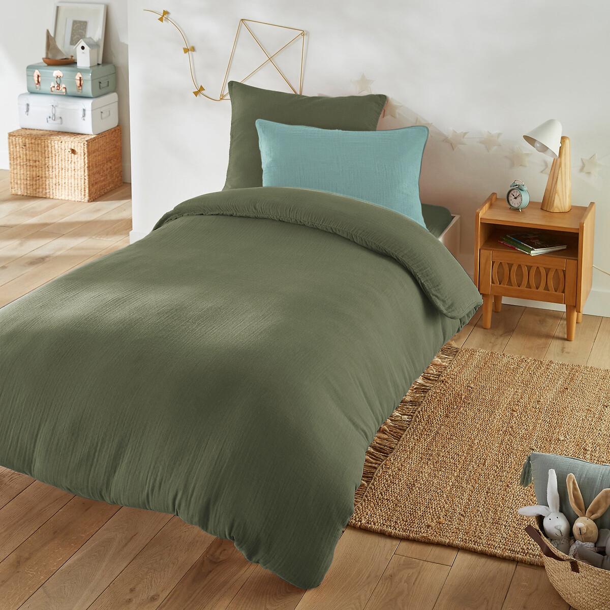 Available in very contemporary colours, the Kumla pillowcase in cotton gauze gives a cosy and warm atmosphere to your child's room. Cotton muslin is light, supple and super soft. Delicately embossed, it does not require ironing. Product Details • 100% cotton • Cotton muslin Care Advice • Machine washable at 60°C • By washing your laundry at 40°C instead of 60°C, you limit energy consumption • Product will regain its texture after tumble drying • The cotton muslin may show slight marks due to packaging creases. We recommend that you wash the product as soon as you receive it, and then tumble dry it to restore its look and the beautiful waffle effect. Dimensions • 50 x 70cm: Rectangular pillowcase • 63 x 63cm: Square pillowcase • MADE IN PORTUGAL. • OEKO-TEX® Standard 100. Standard 100 certification by OEKO-TEX® tests textile products for harmful substances via an independent, international label.
