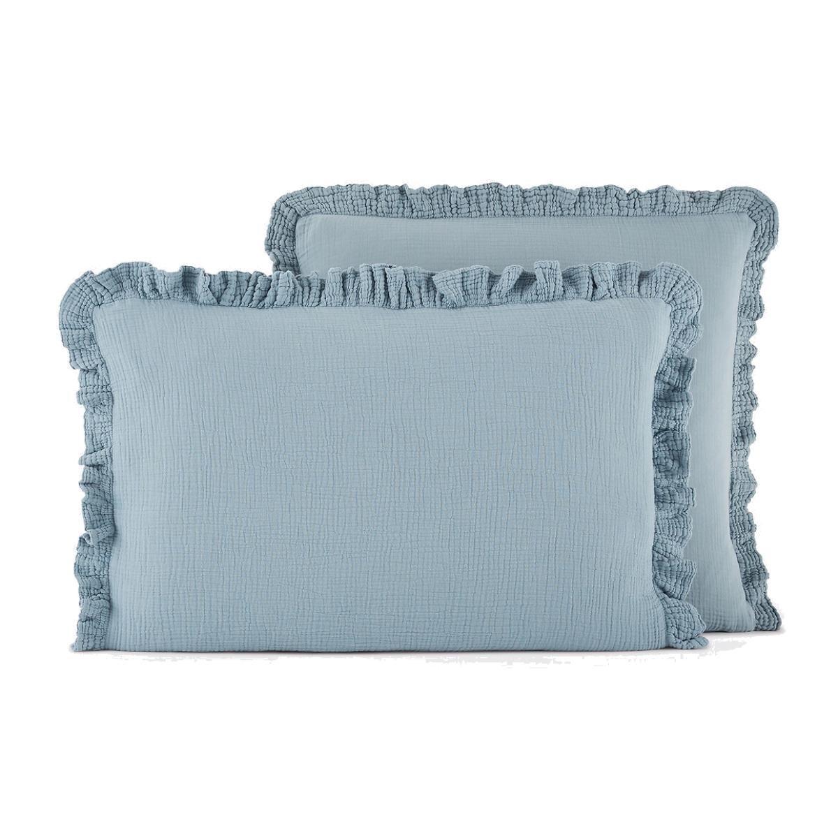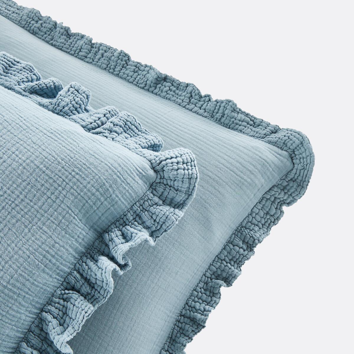 Available in very contemporary colours, the Kumla ruffled pillowcase in cotton muslin gives a cosy and warm atmosphere to the bedroom.. Cotton muslin is light, supple and super soft. Delicately embossed, it does not require ironing. Product Details • 100% cotton • Cotton muslin • 5cm ruffle. Care Advice • Machine washable at 60°C • By washing your laundry at 40°C instead of 60°C, you limit energy consumption • Product will regain its texture after tumble drying • The cotton muslin may show slight marks due to packaging creases. We recommend that you wash the product as soon as you receive it, and then tumble dry it to restore its look and the beautiful waffle effect. Dimensions • 50 x 70cm: Rectangular pillowcase • Square pillowcase (63 x 63cm) :Square pillowcase • MADE IN PORTUGAL. • OEKO-TEX® Standard 100. Standard 100 certification by OEKO-TEX® tests textile products for harmful substances via an independent, international label.