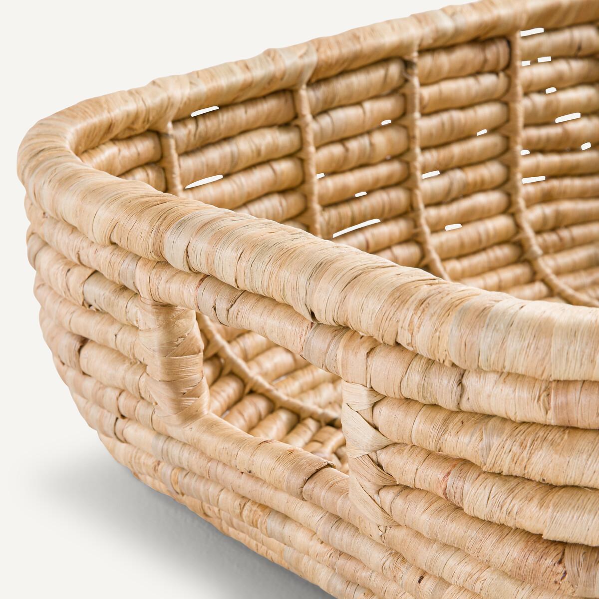 I love this basket for its natural, textured aesthetic-it's a versatile piece that can work in various interiors, from coastal and Scandi-inspired spaces to boho and rustic schemes. Its rectangular shape makes it practical for organising everything from magazines and throws to children’s toys or even kitchen essentials. Styling tips include using it as a statement storage solution in a living room or hallway, or filling it with fresh greenery or flowers to add warmth and a touch of nature. Its woven design brings an earthy vibe, and because it’s lightweight, it’s easy to move around where needed, making it both functional and attractive.