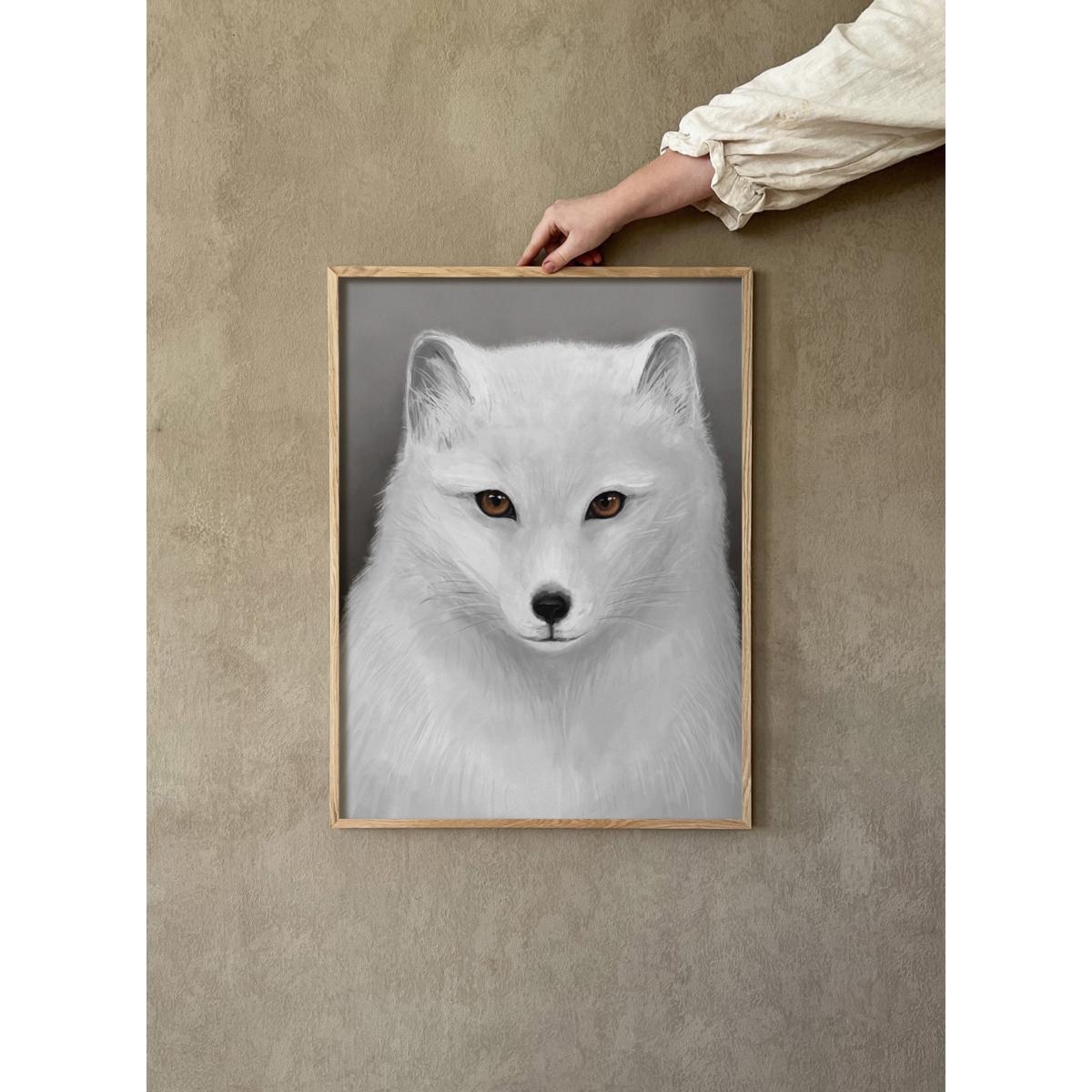 I really like this Arctic fox poster-it's a striking piece that adds a touch of minimalist sophistication. Its monochrome palette makes it versatile, working well in modern, Scandinavian-inspired interiors, or as a calming accent in more eclectic spaces. For styling, I suggest pairing it with light wood frames or crisp white mountings to enhance its clean look. It’s perfect for a living room or bedroom where you want a subtle yet captivating focal point, and it also works beautifully in a gallery wall arrangement. Keep the surrounding décor simple to let the artwork stand out or complement it with other nature-inspired accents for a cohesive theme.