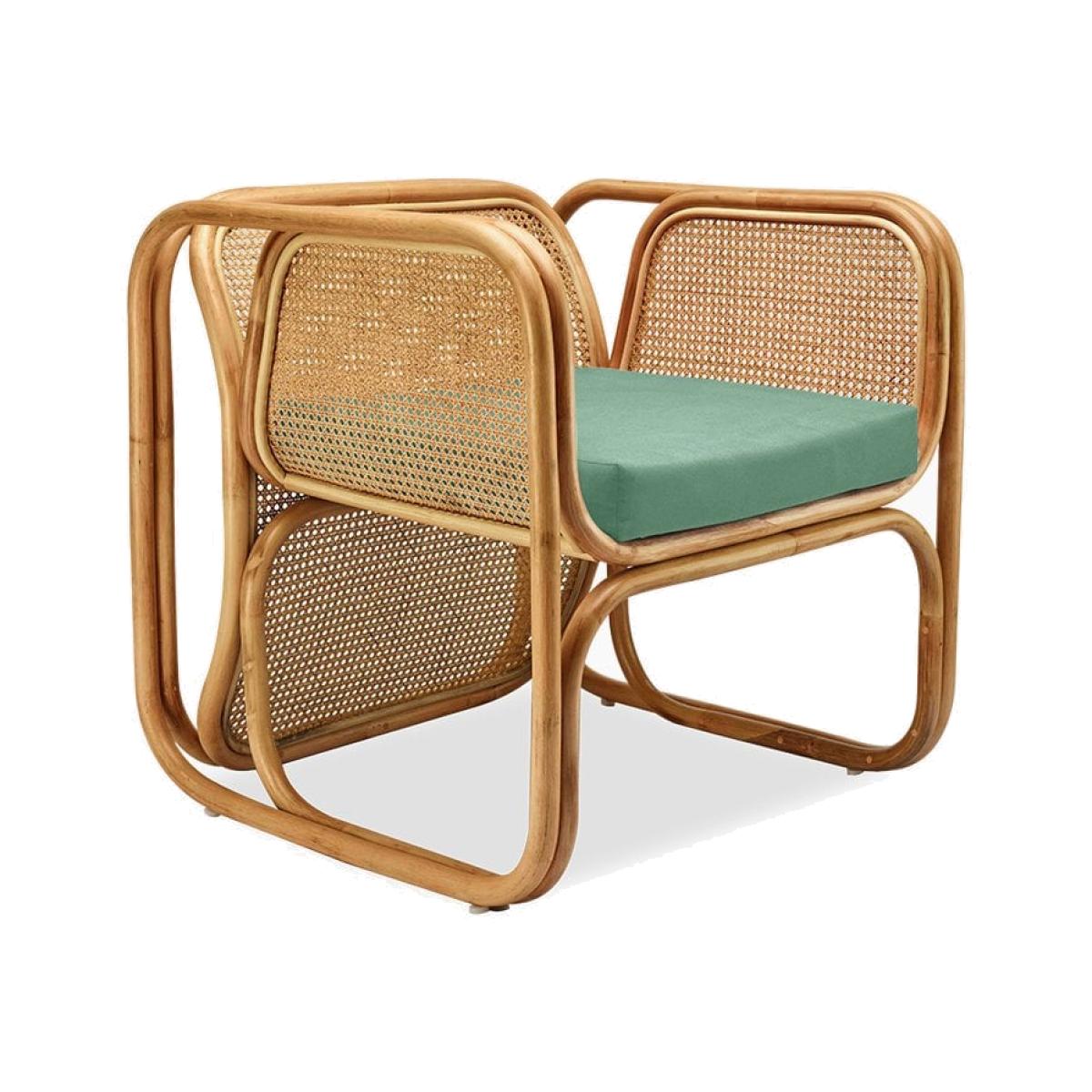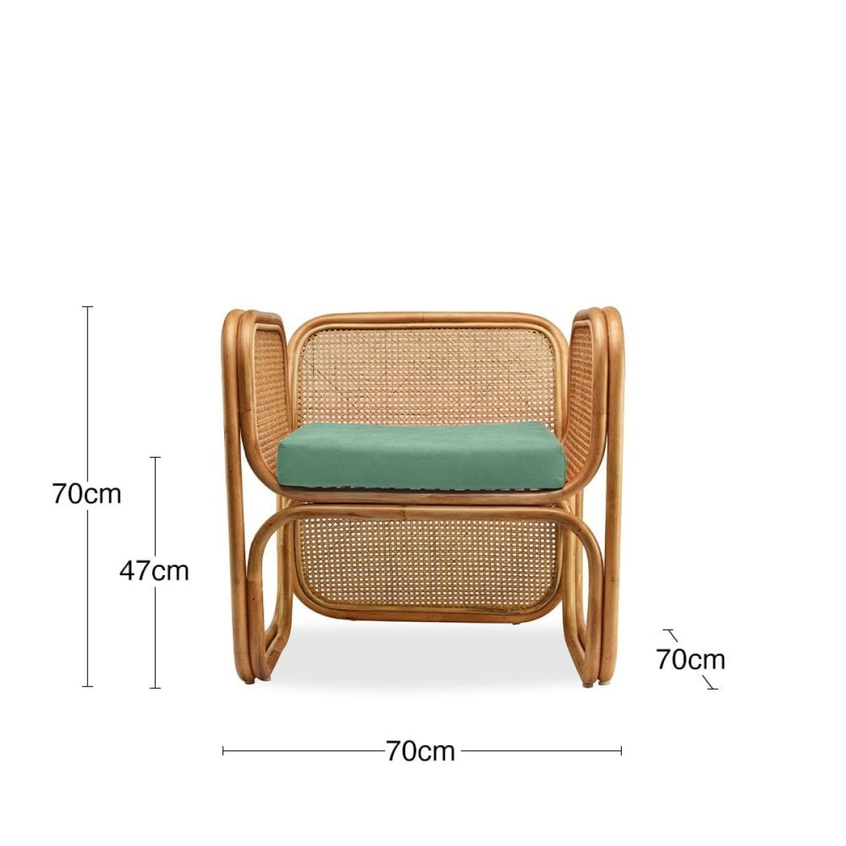 I love this armchair for its relaxed yet stylish vibe, making it perfect for creating a casual, inviting space. The rattan frame adds a natural, bohemian touch, while the mint green cushion keeps things fresh and light. It works well in sunny conservatories, reading nooks, or laid-back lounge areas. To style it effectively, pair with neutral or earthy-toned accessories-think woven rugs or wooden side tables-to let the colour pop without overwhelming the space. Practical tips include using washable cushion covers and placing it where it can catch natural light to enhance its breezy, summery appeal.