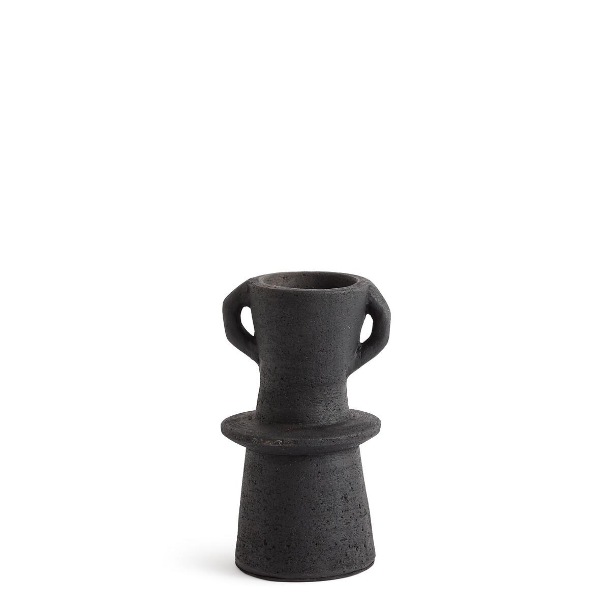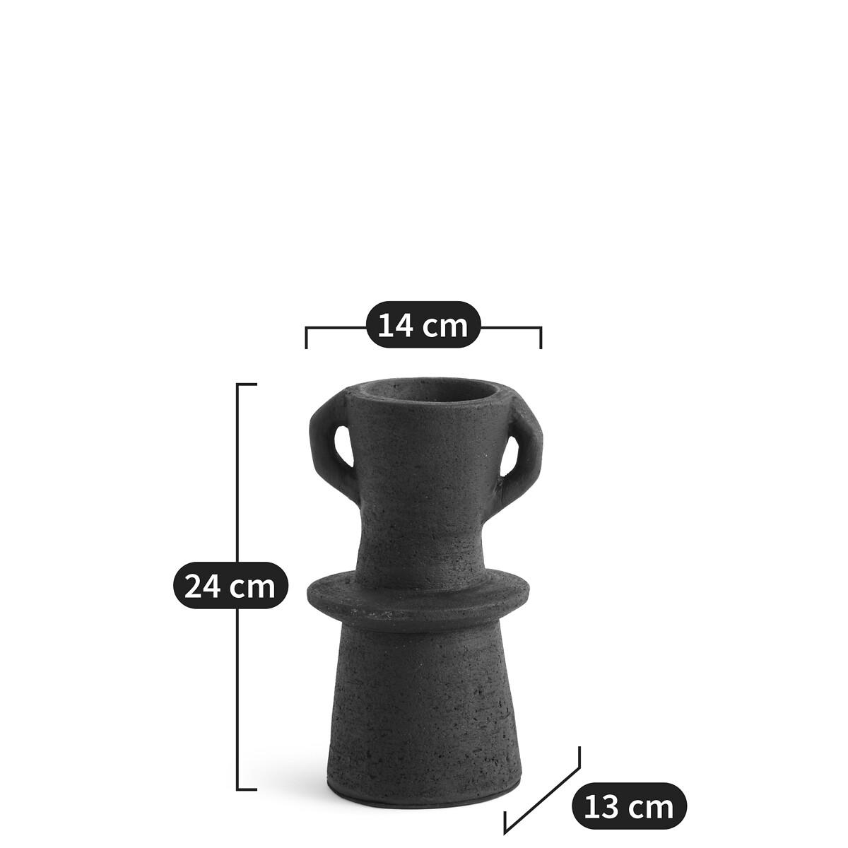 I love this little black vase for its bold, sculptural shape and rustic terracotta finish, which give it a modern yet earthy feel. It works really well in contemporary or minimalist interiors, especially when paired with natural textures like wood or linen. For styling, try filling it with dried flowers or simple greenery for a pop of colour, or leave it empty as a statement piece on shelves or side tables. Its versatile size makes it ideal for smaller spaces or as a complement to other decorative objects, adding height and visual interest without overwhelming the room.