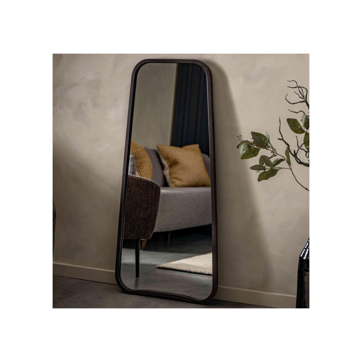 Everything about this contemporary curved leaner mirror is right on trend, from its free-flowing shape to the slender metal frame. Why you'll love it With its flowing shape and curved corners, this leaner mirror is so on trend. Contemporary style. Simple, minimal black iron frame. Bold in a living or dining space, elegant in a bedroom. This leaner mirror is part of the Furniture Village home accessories collection. What you need to know Iron frame. This leaner mirror may also be wall-hung. For indoor use only. Dimensions Height: 123 cm (49 in). Depth: 2 cm (1 in). Width: 57cm (23 in).