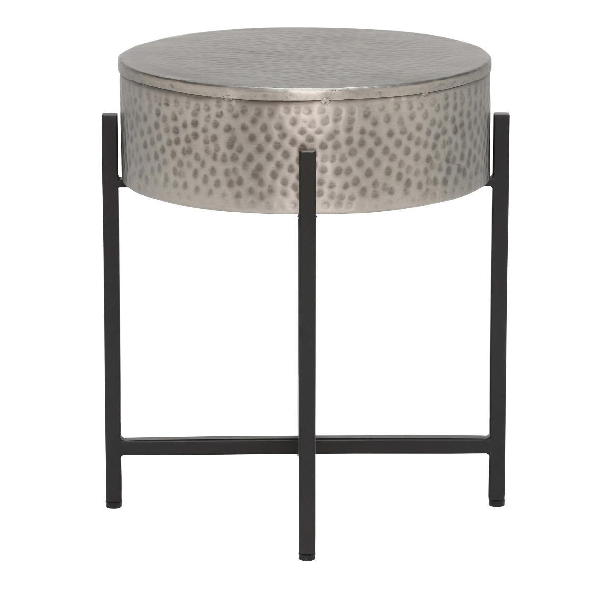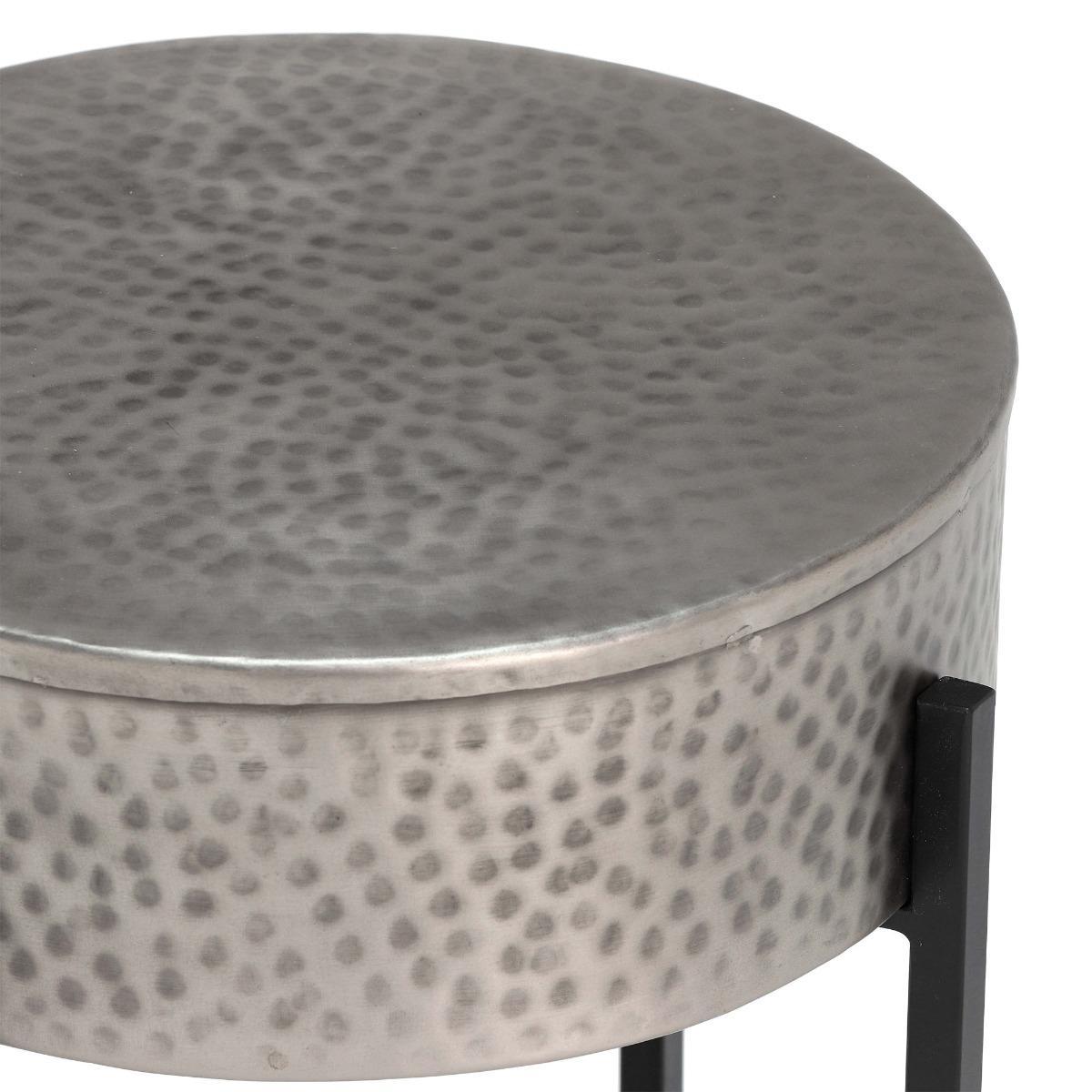 I love this side table because of its sleek, contemporary design and distinctive hammered metal surface, which adds texture and interest without overwhelming a space. It works particularly well in modern or industrial interiors, but can also elevate more eclectic schemes when paired with contrasting materials like soft textiles or warm woods. Practical styling tips include using it as a nightstand in the bedroom with a few favourite books and a table lamp, or placing it beside a sofa to hold drinks, remotes or decorative accents. Its compact size makes it versatile and easy to incorporate into various layouts, ensuring both functionality and style.