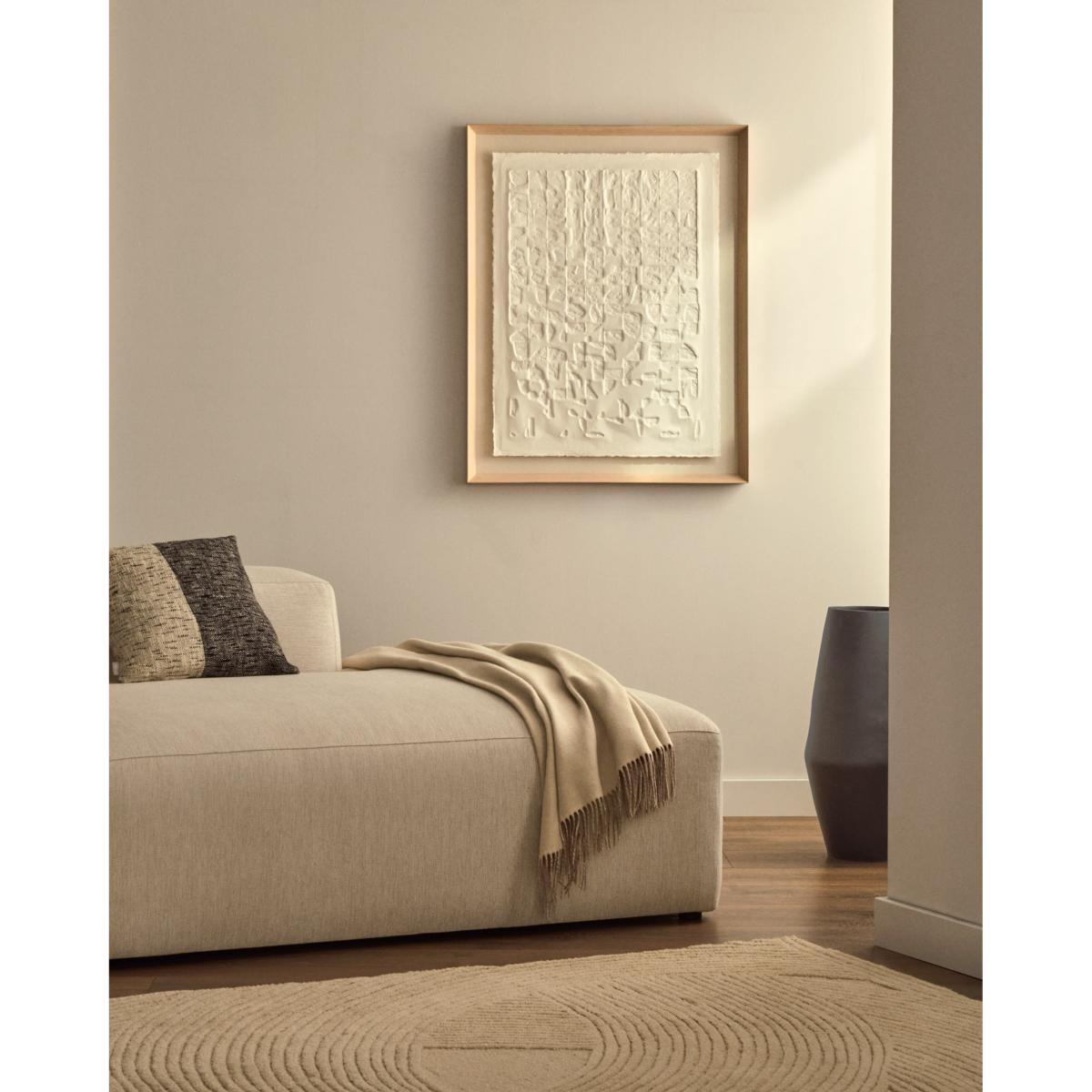 I really like this piece because of its subtle texture and minimalist aesthetic, making it a versatile addition to a variety of interior styles. It works particularly well in contemporary, Scandinavian, or even boho spaces where simplicity and natural materials are key. To style it effectively, consider pairing it with other neutral or earthy tones and giving it space to breathe on a feature wall. Practical tip: hang it at eye level in a well-lit spot to highlight its tactile qualities, and complement it with other artworks or decorative objects in similar textures or colours to create a cohesive display. Its understated charm makes it an unobtrusive focal point, perfect for adding a hint of interest without overpowering the room.