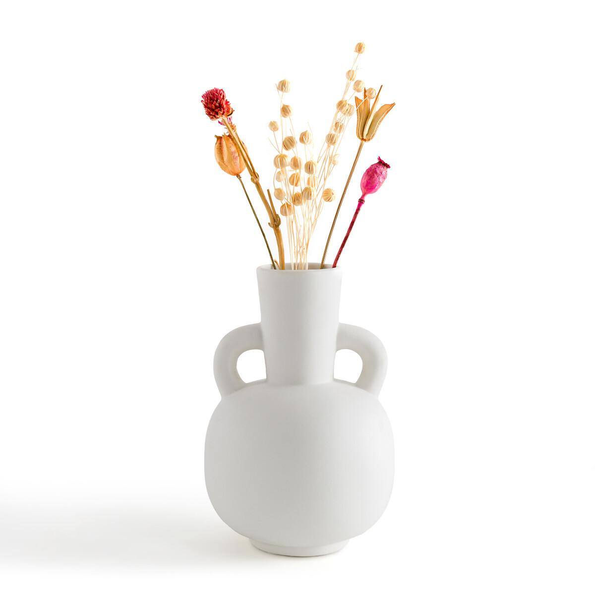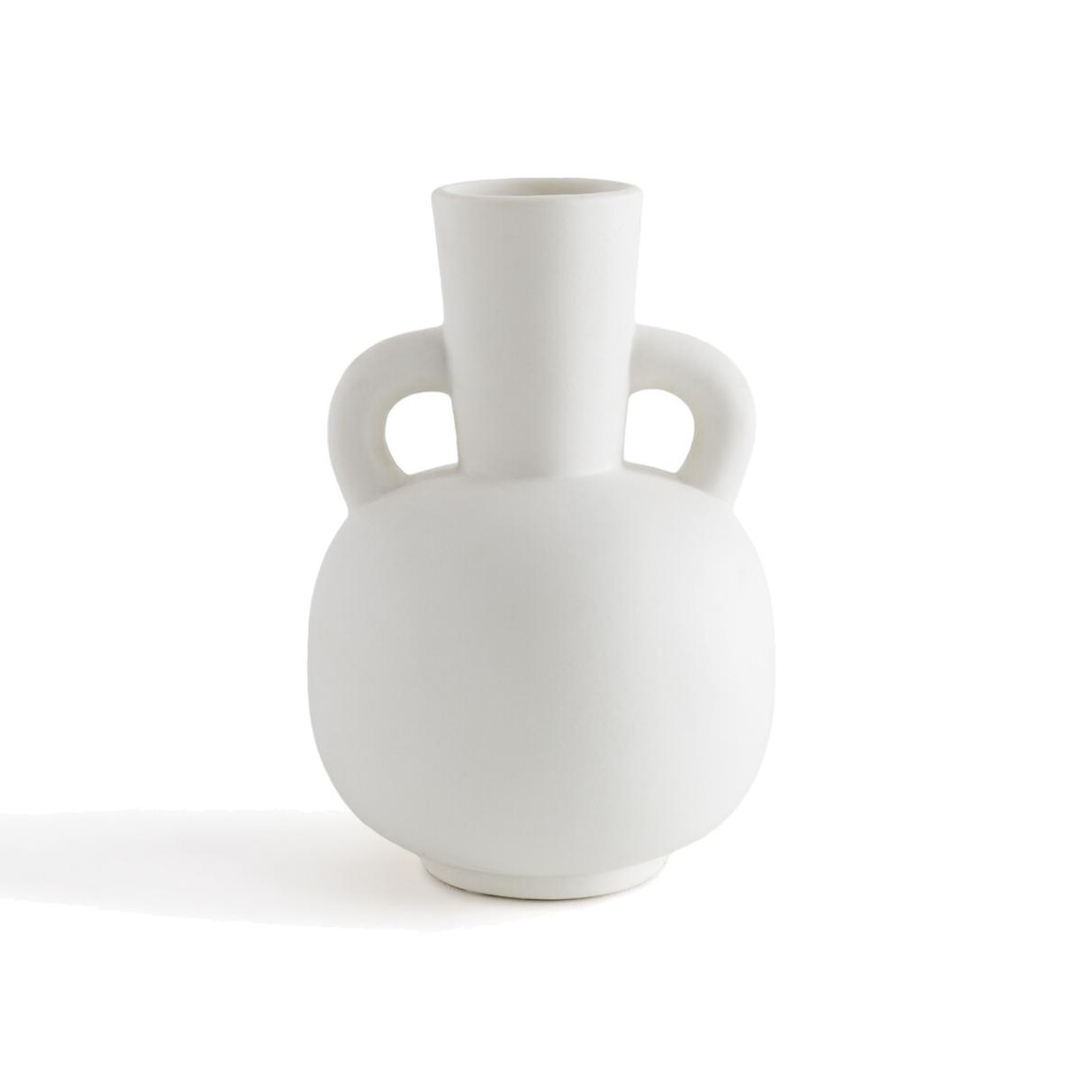 Drawing inspiration from antique design, with a Mediterranean spirit and neutral tones... The Kuza ceramic sculpture vase offers the elegance of raw materials. It's an invitation to travel. Product Details • Ceramic body • Amphora-style vase with 2 small handles • Do not fill with water - for faux blooms only. Dimensions • Diameter: 10.8cm • Height: 16cm
